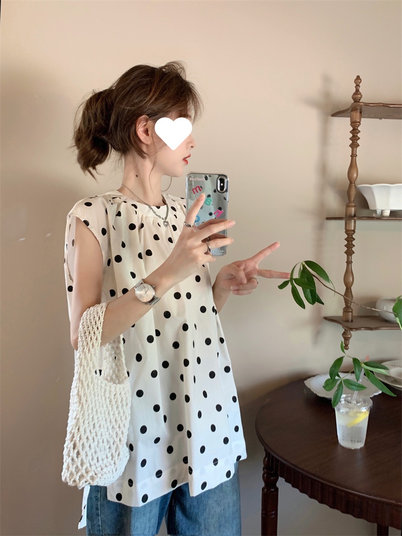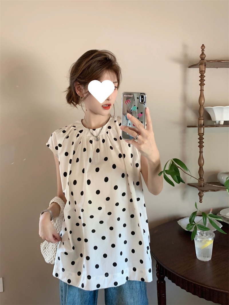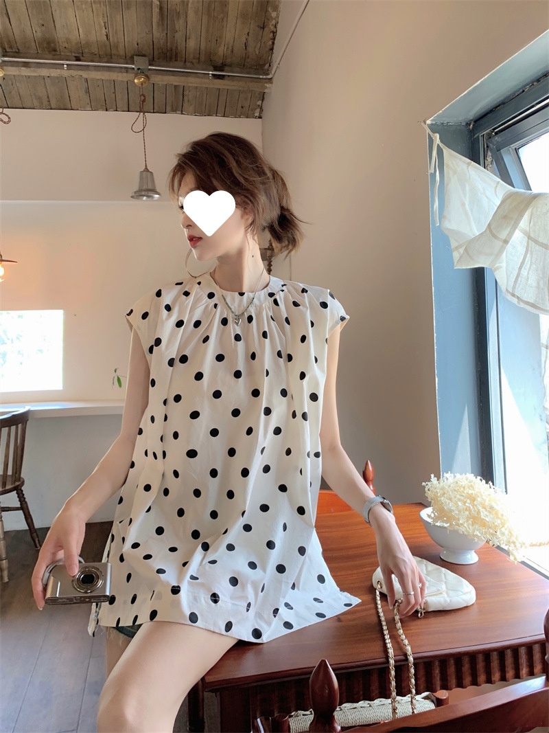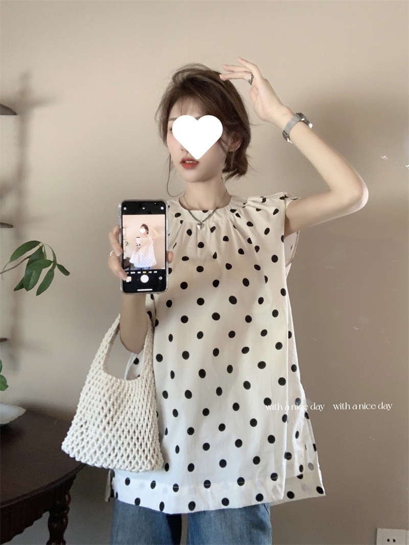 French Style Polka Dot Blouse Women Loose Mid-length
