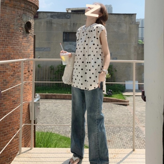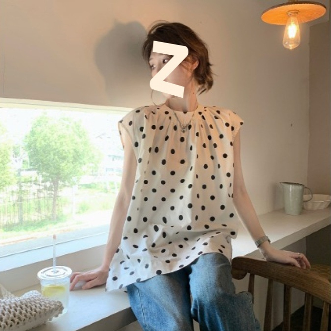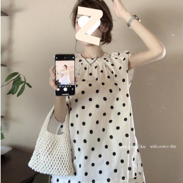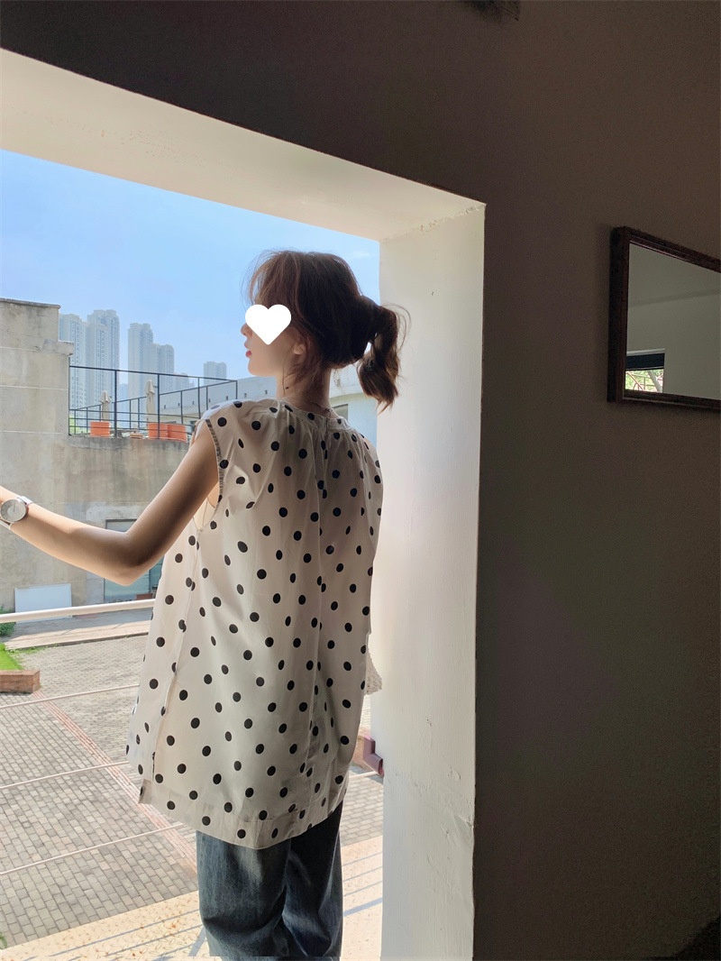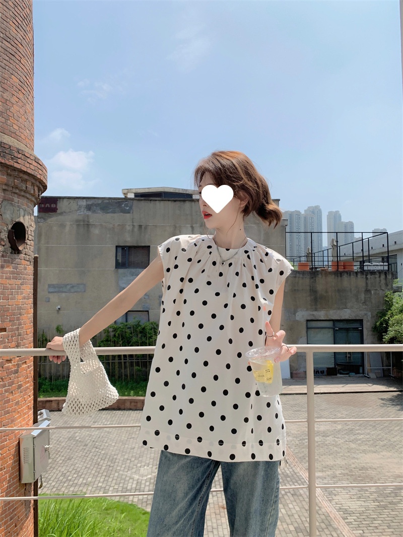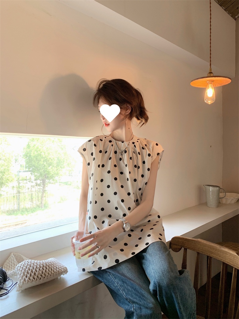 French Style Polka Dot Blouse Women Loose Mid-length