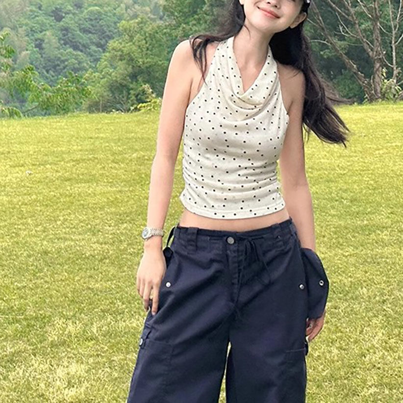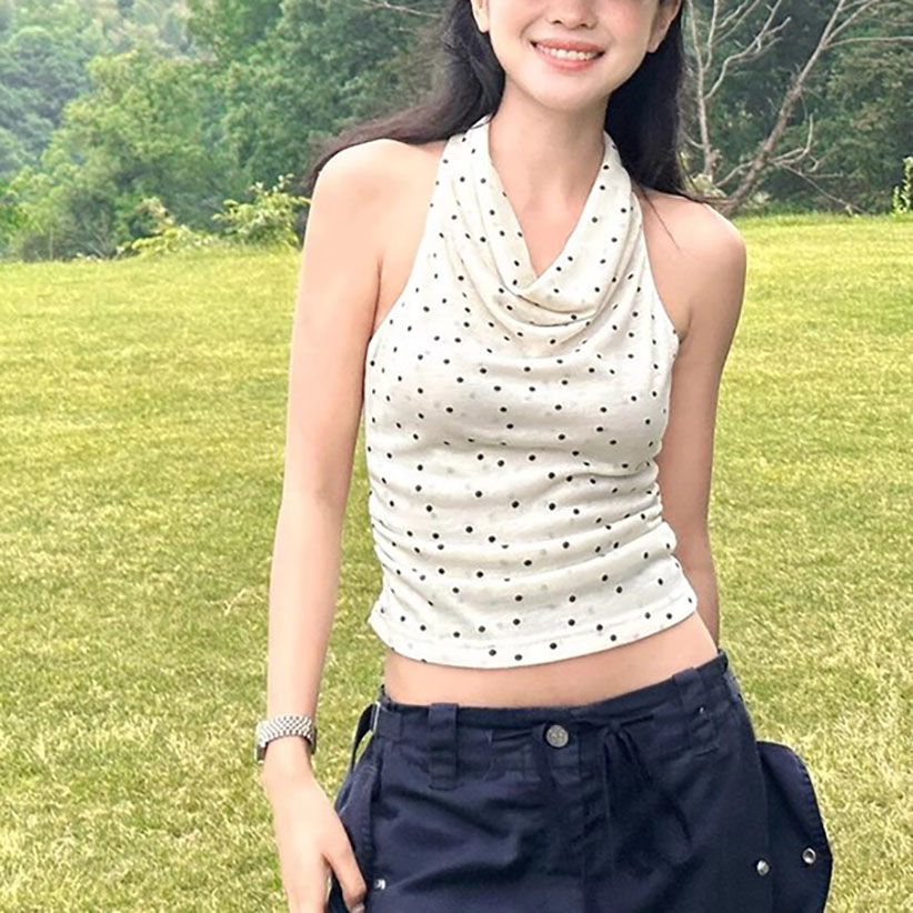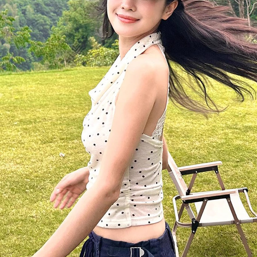 French-style Polka-Dot Scoop-Neck Camisole Summer Backless Top