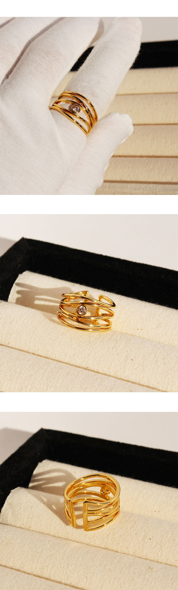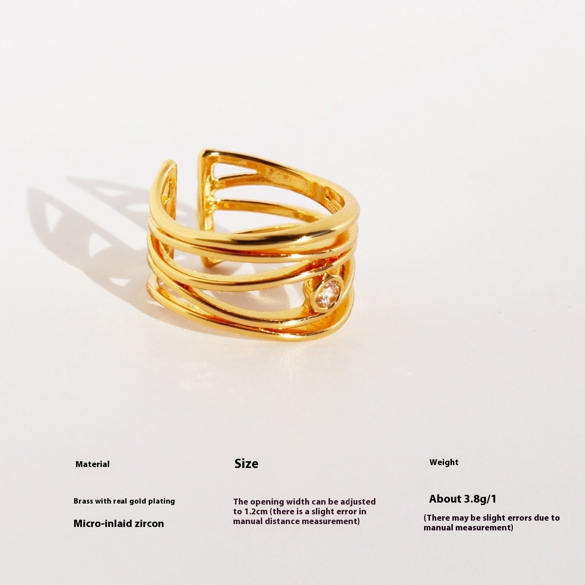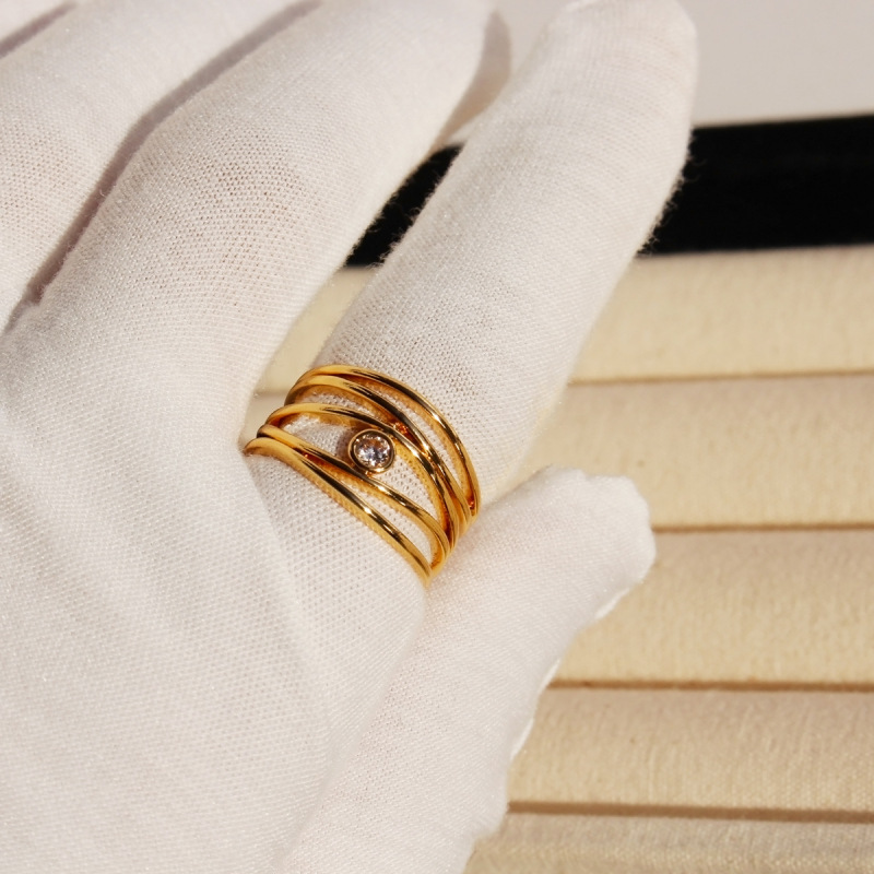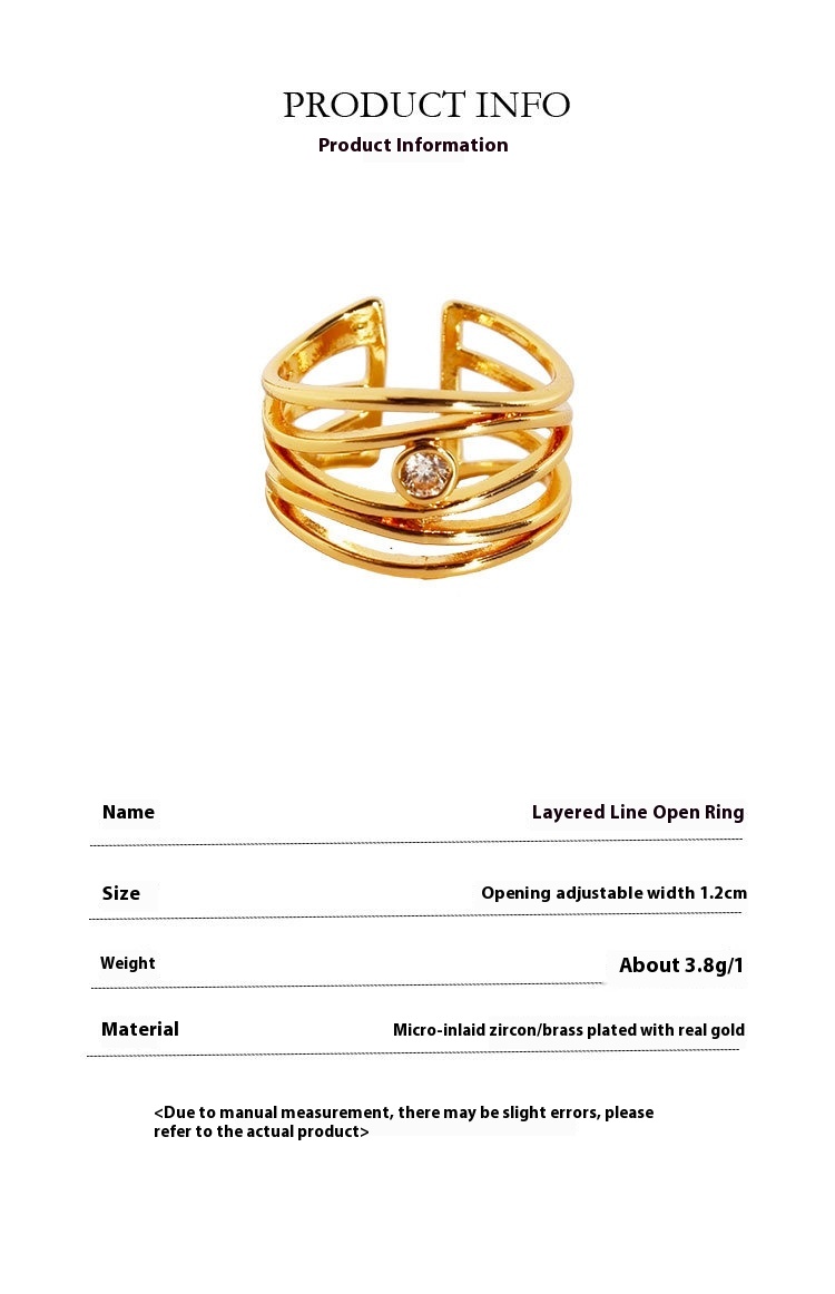 Product information:Type: Ring Color: Gold Applicable population: Female Material: Brass zircon Style: Niche