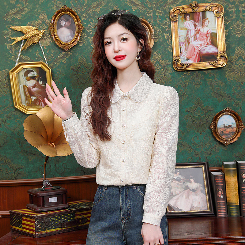 French Style Socialite Style Western Style Hollow Lace Shirt