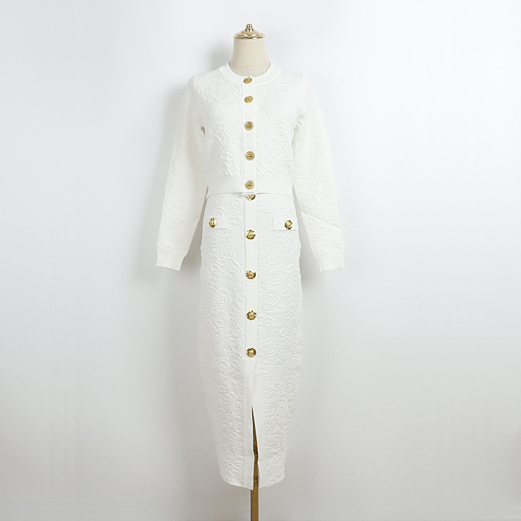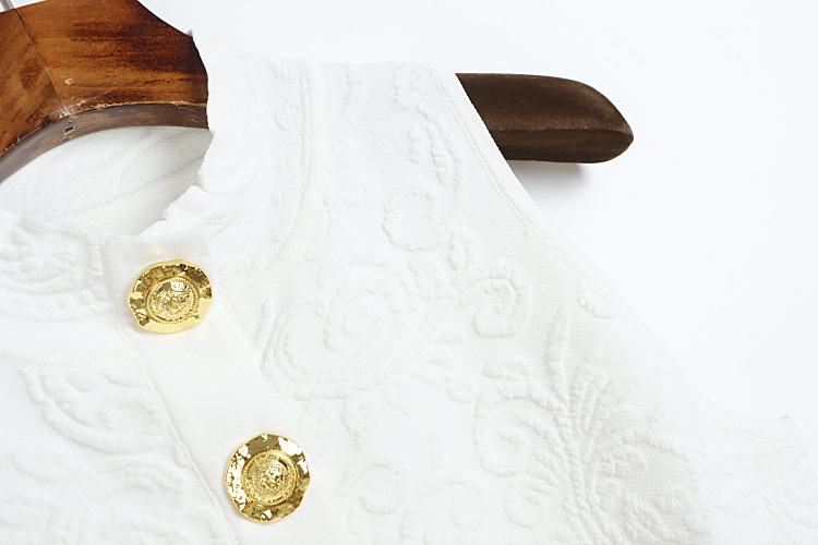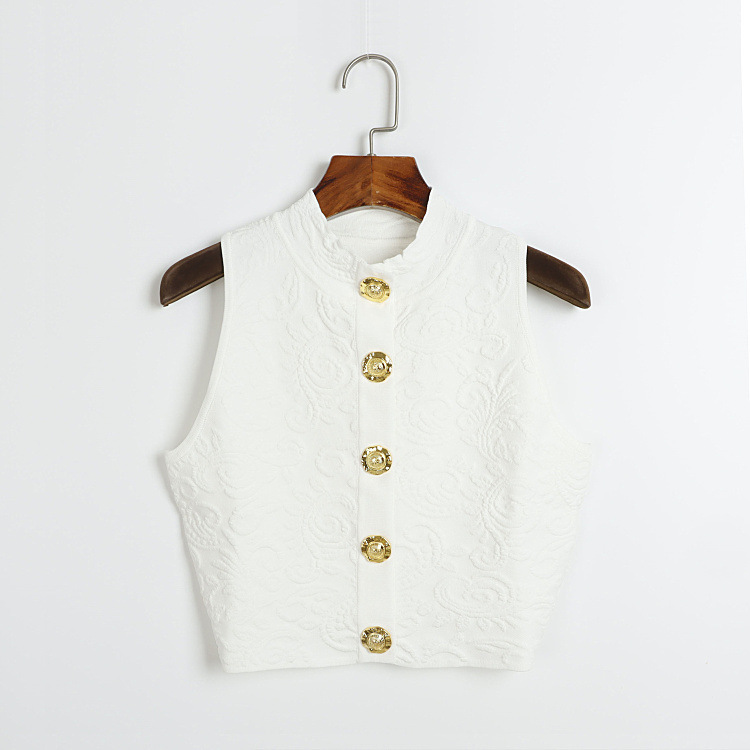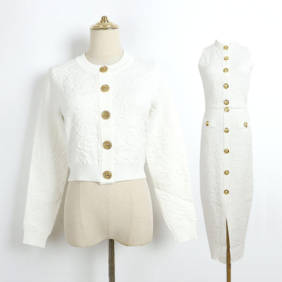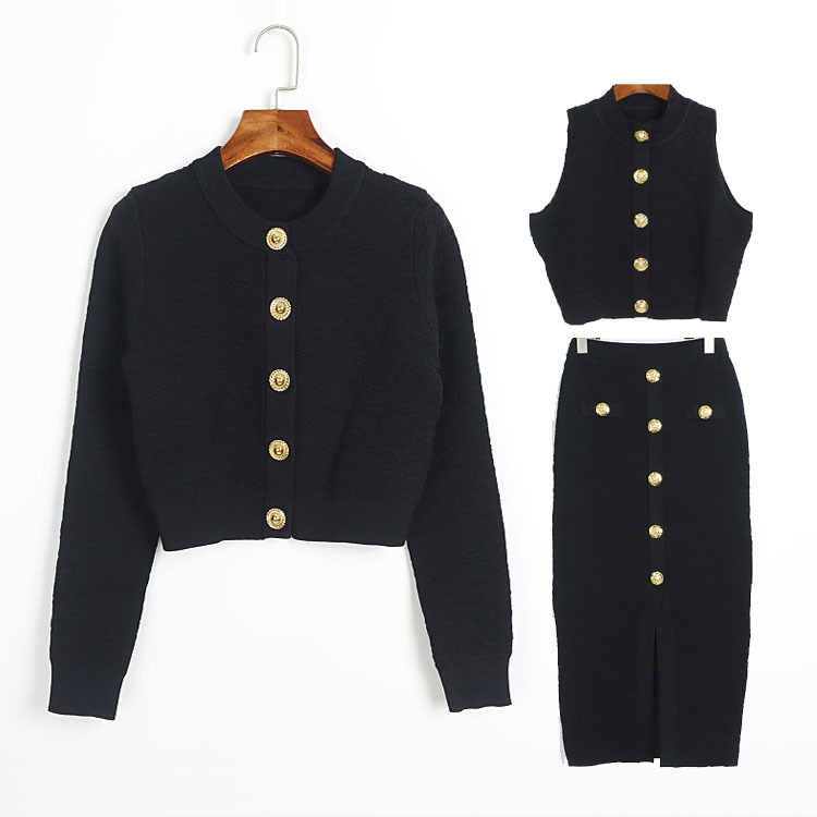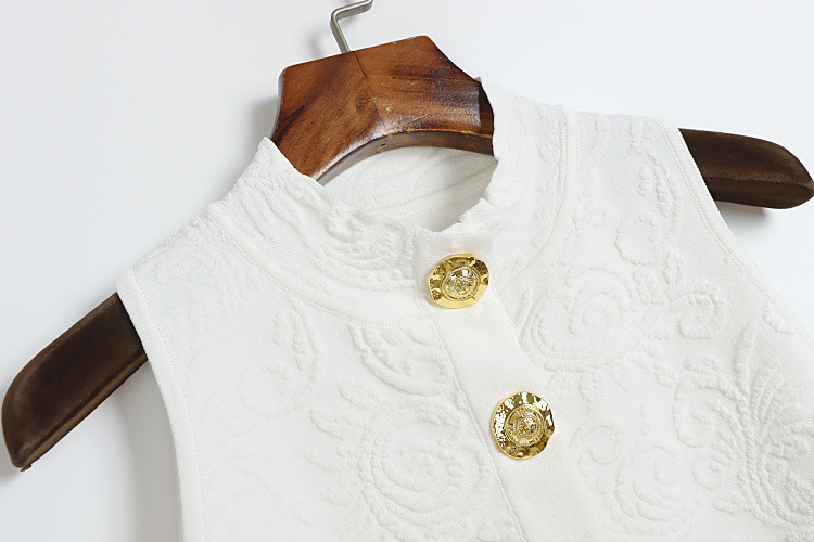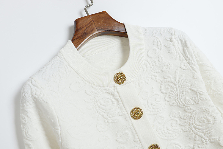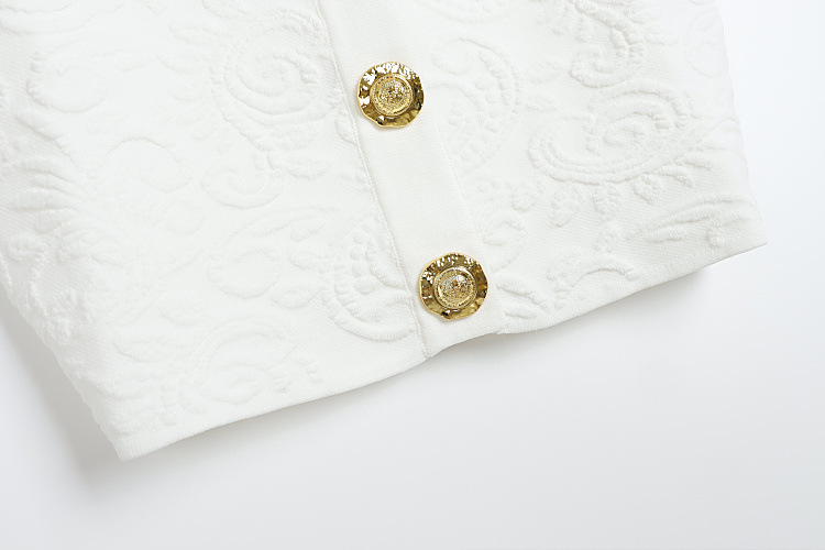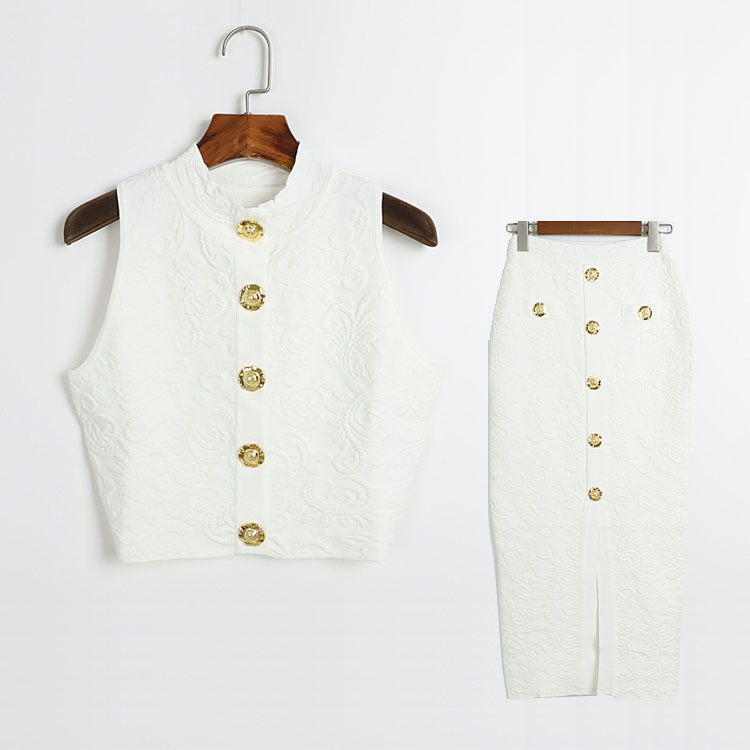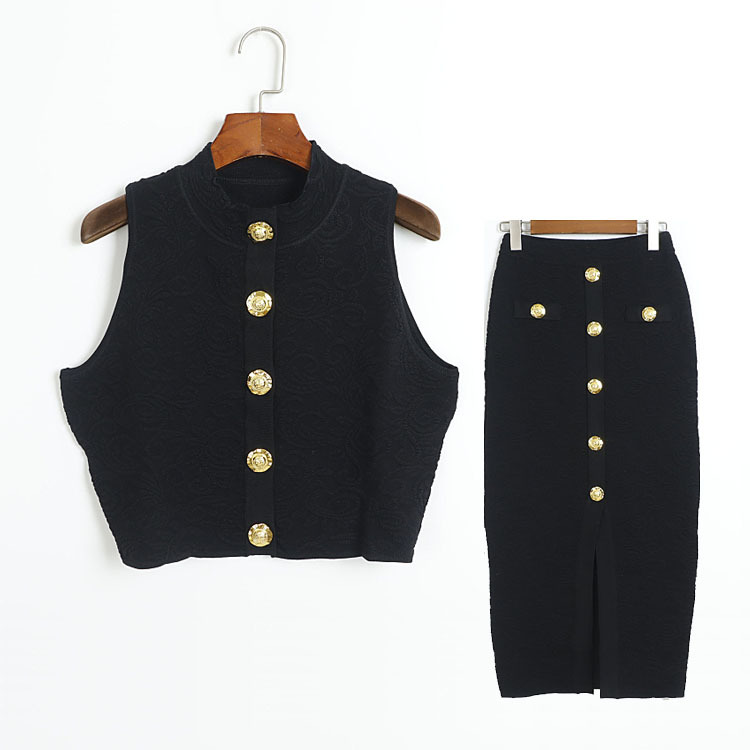 Colors: (Floating Floral Gold-Buckle Cardigan KS) White, (Floating Floral Gold-Buckle Cardigan KS) Black, (Floating Floral Gold-Buckle Vest Set QTS) White, (Floating Floral Gold-Buckle Vest Set QTS) Black