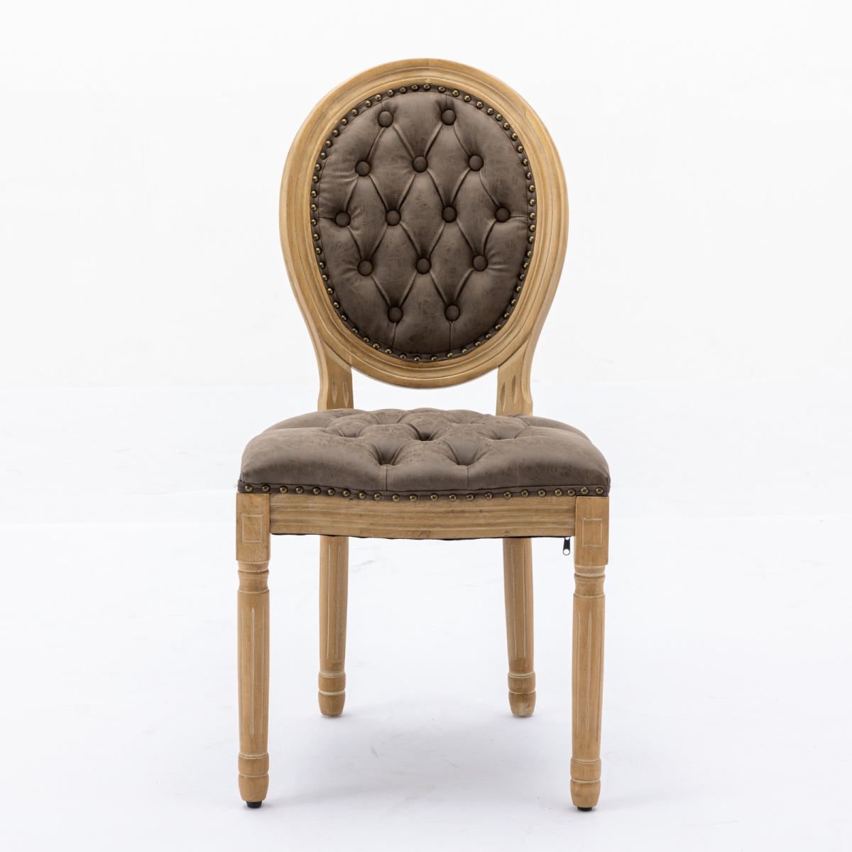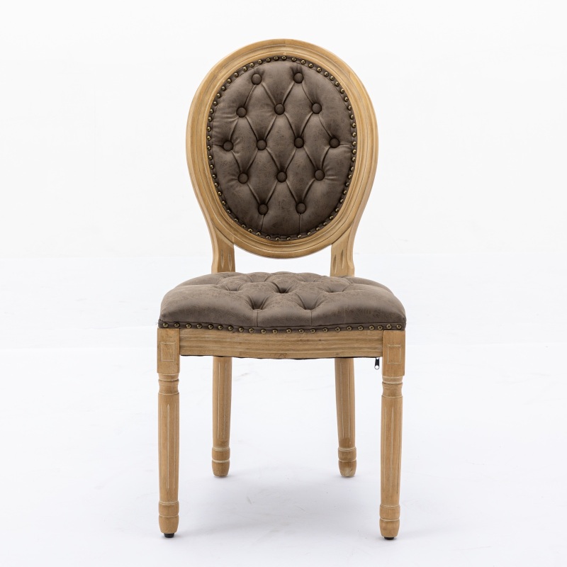 Product Name:French Style Solid Wood Frame Antique Painting,Hand-pulled buckle decoration PU artificial leather Dining Chair with Nailhead Trim ,Wood Legs,Density Foam,Steel Spring inner,Set of 2,Brown,SW1839BR