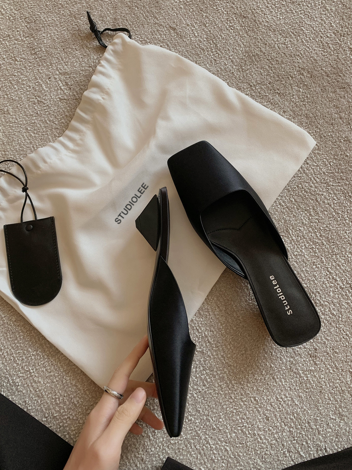 French Style Square Toe Low-cut Silk Satin Triangle Heel Muller Sandals