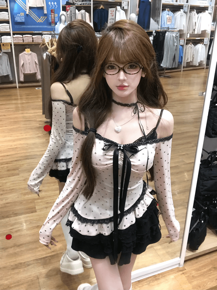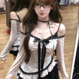 French Style Temperament Polka Dot Lace Strap Top