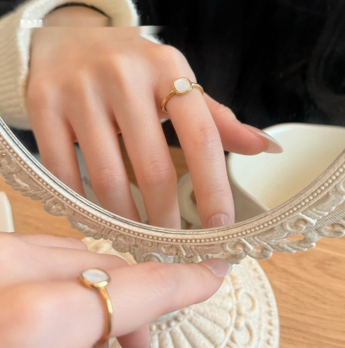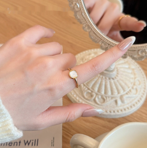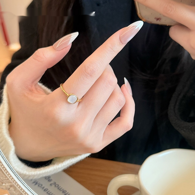 French-style Vintage Natural White Mother-of-Pearl Ring For Women