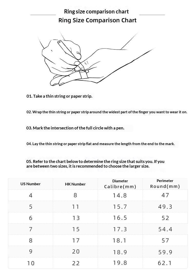 Sizes: US Size 6 | HK Size 13 | Circumference 52mm, US Size 7 | HK Size 15 | Circumference 54.4mm, US Size 8 | HK Size 17 | Circumference 57mm, US Size 9 | HK Size 20 | Circumference 59.9mm