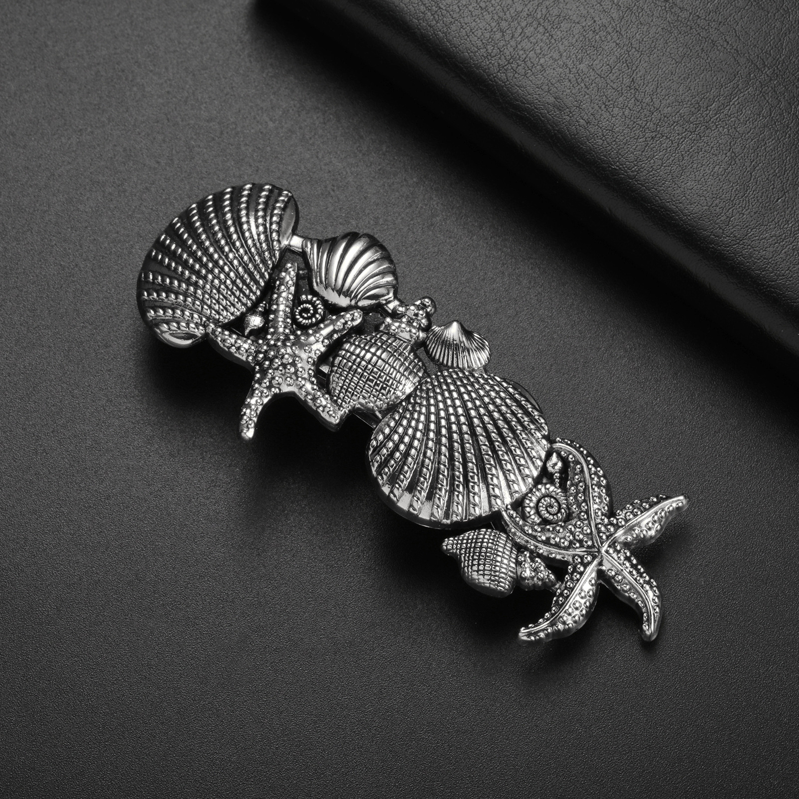 Style: Zinc Alloy Antique Silver Shell and Starfish Spring Hair Clip