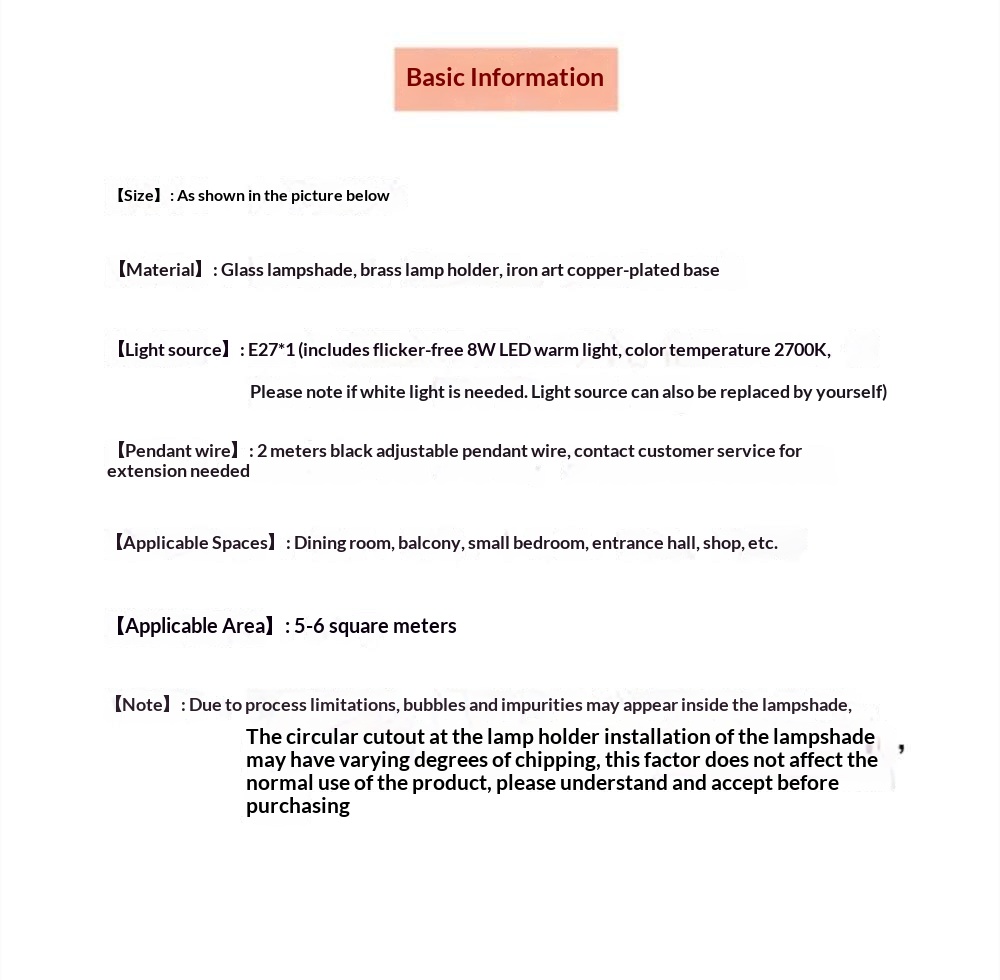 Color Category: Glass Chandelier + 8W Flicker-Free LED Warm Light