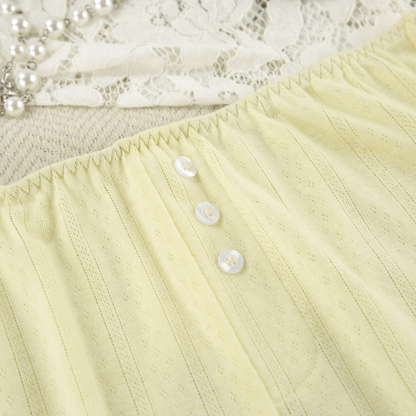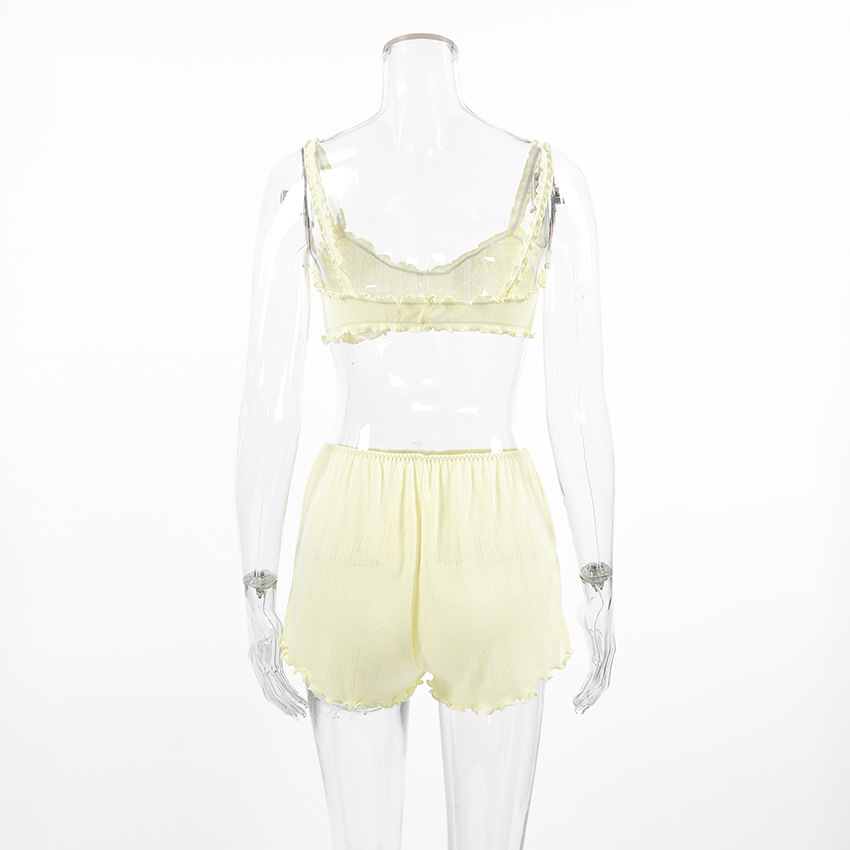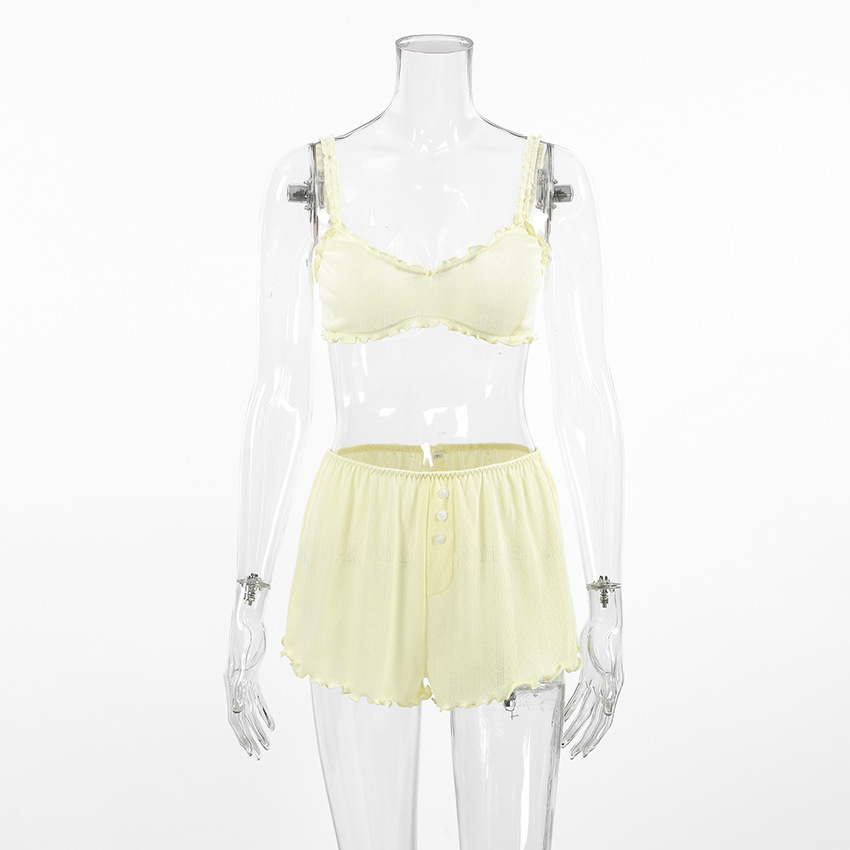 Fresh And Sweet Solid-Color Knitted Underwear Shorts Womens Pajama Set