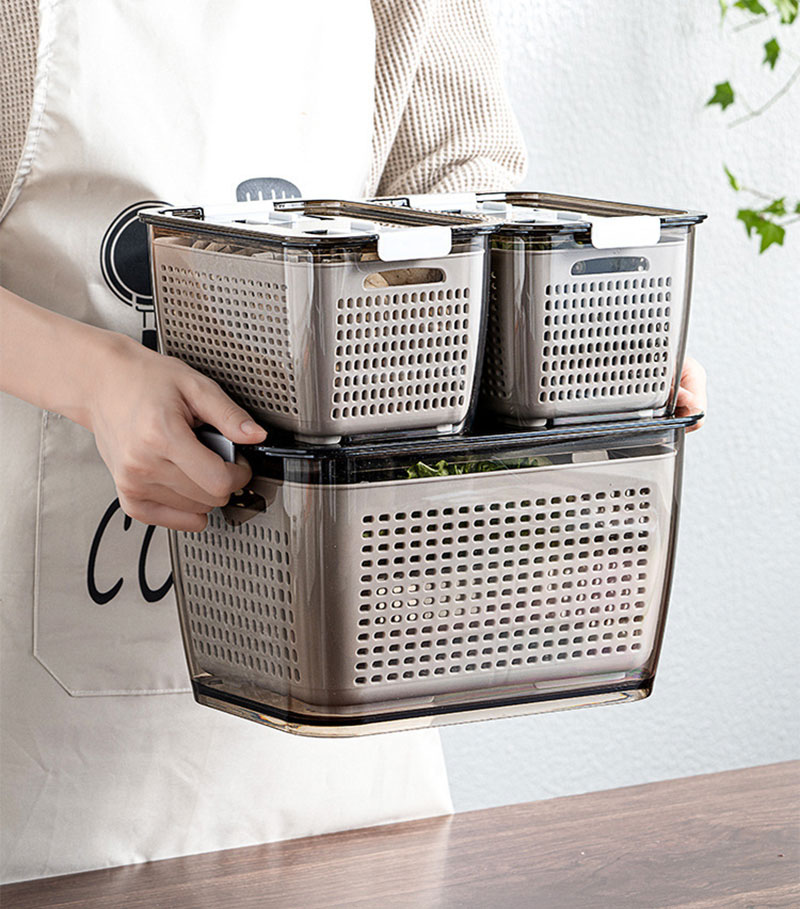 Fresh-keeping Box Large-capacity Separated Storage Box Fruit And Vegetable Cleaning Double-layer Drain Basket