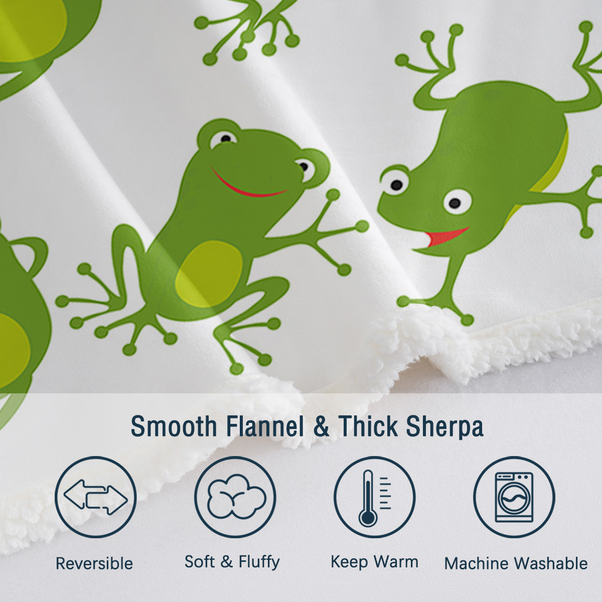 Frog Fleece Throw Blanket For Kids Girls Boys Fluffy Cozy Green Aerobics Frog Sherpa Blanket For Sofa Couch Travel