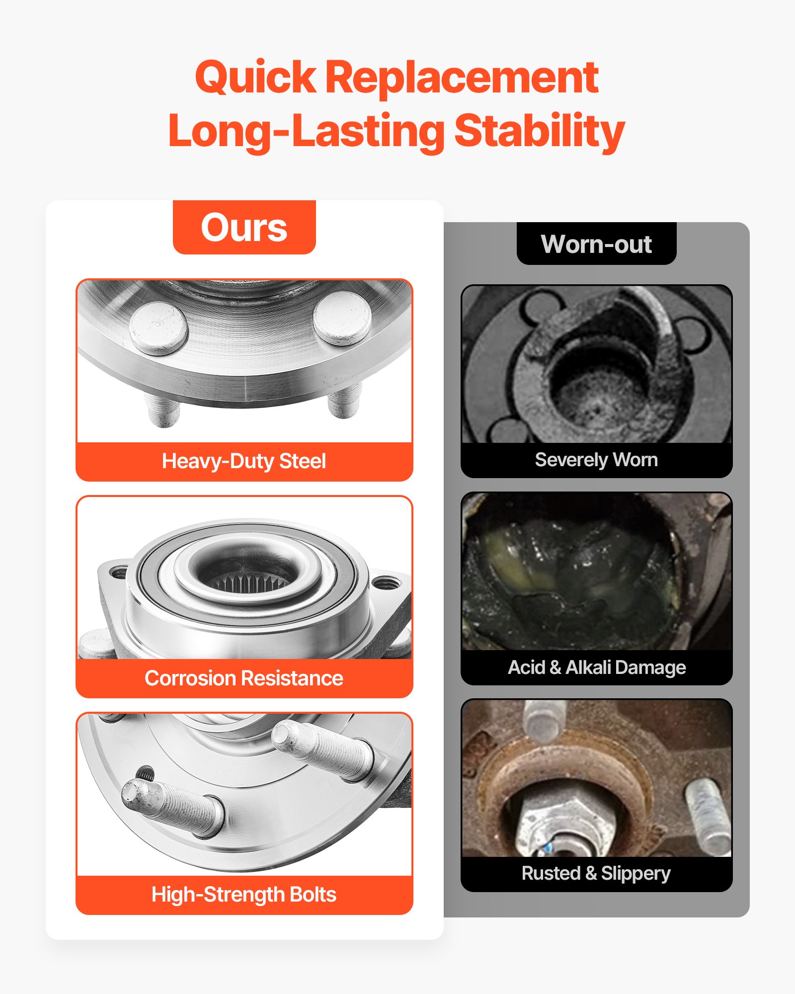 Industrial-Grade Steel Bearing: The wheel bearing is pre-lubricated to minimize friction and wear, and reduce noise. It can withstand multi-directional loads during steering, ensuring reliable handling