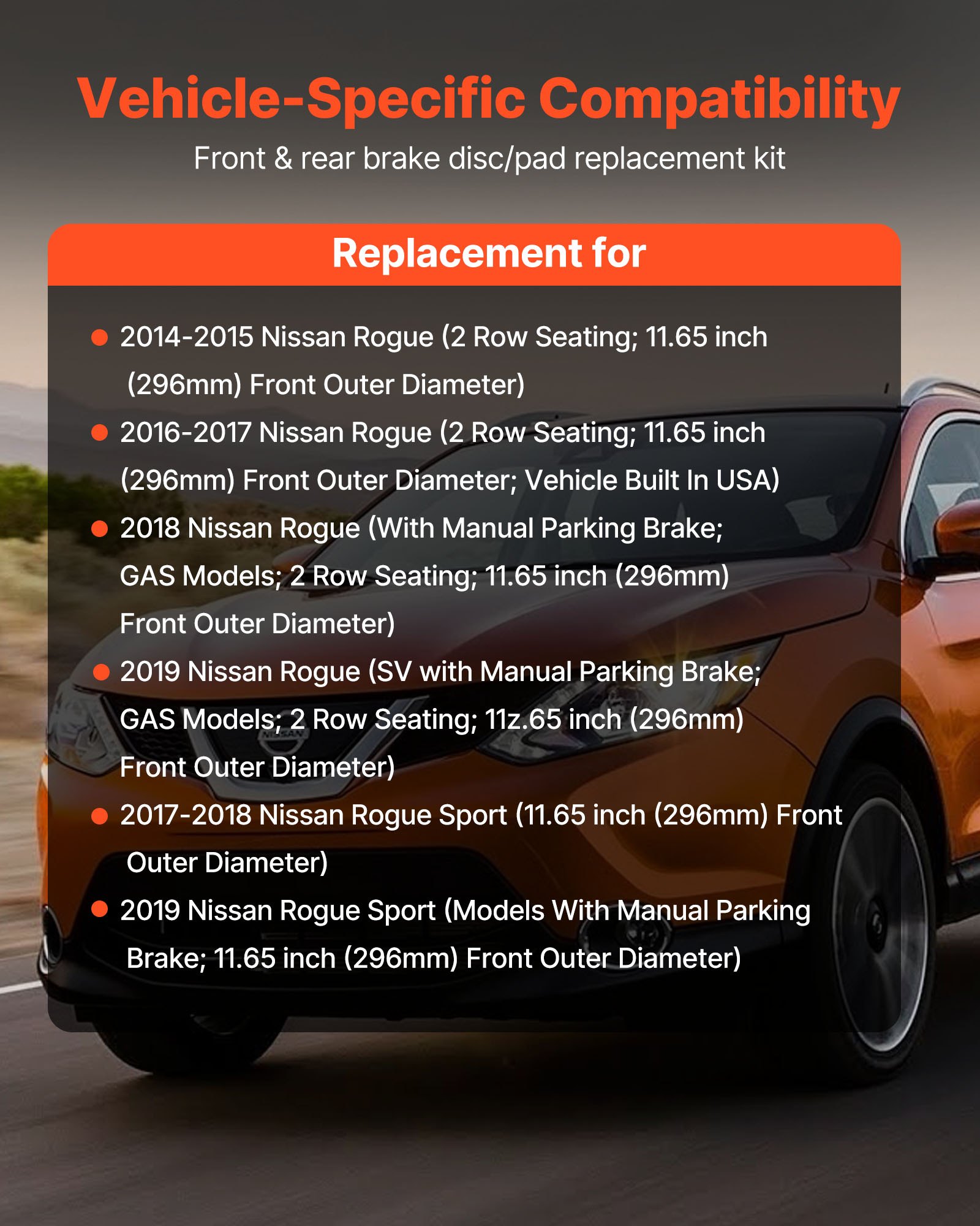 Vehicle Compatibility: Complete brake replacement kit: 2 front brake discs, 2 rear brake discs, 4 front brake pads, 4 rear brake pads, 8 front brake pad clips, 8 front brake pad spring clips, and 8 rear brake pad clips. Fit multiple vehicle models