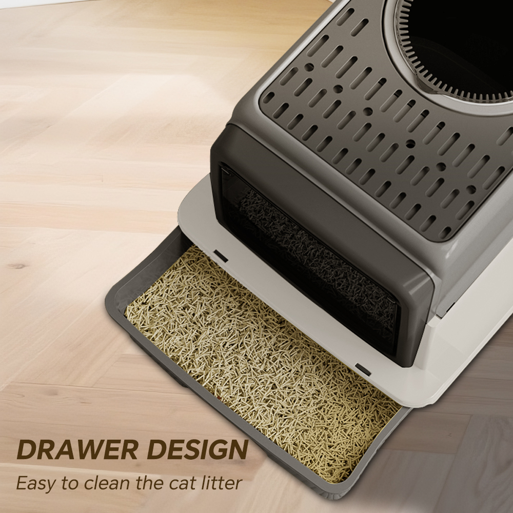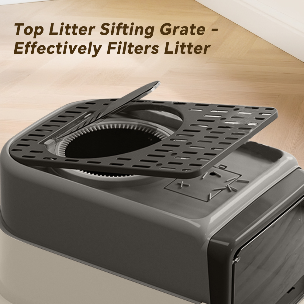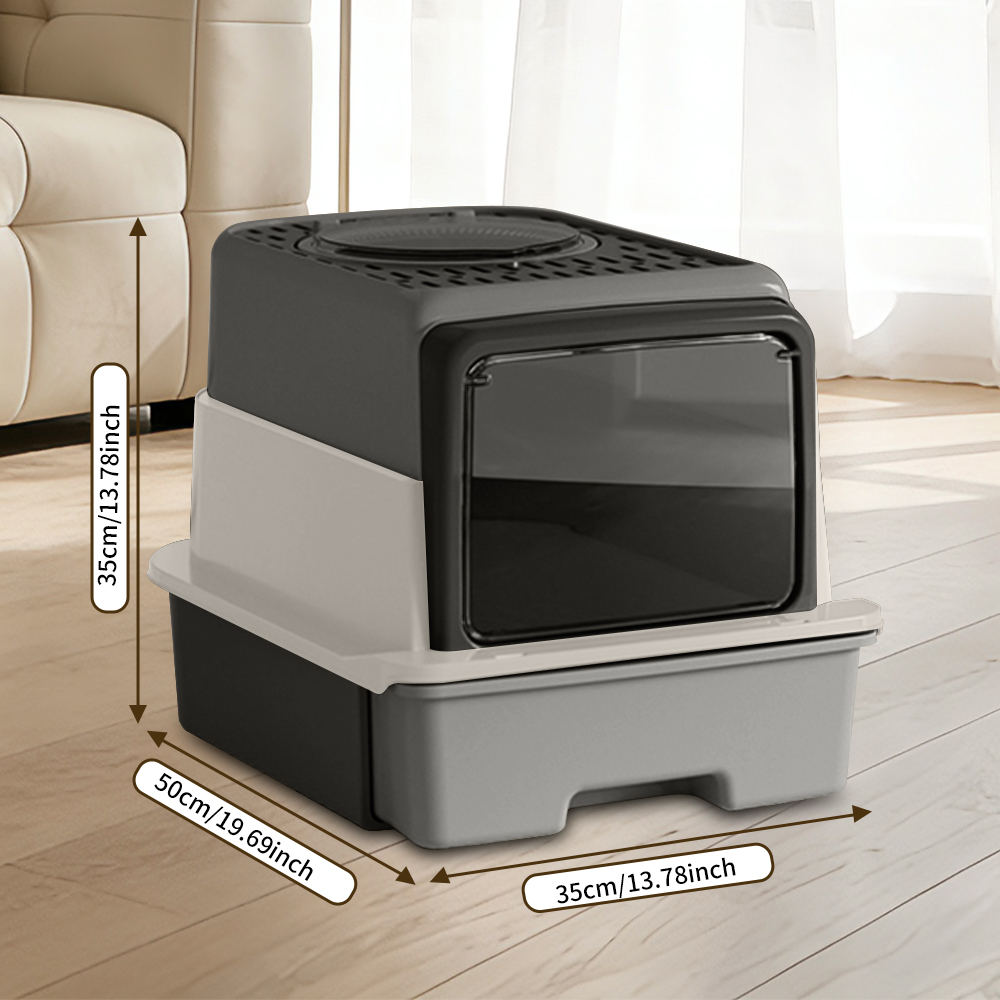 Front Flip Door Dual Opening, Anti-Splashing Anti-Tracking Odor Locking Cat Toilet With Free Scoop & Deodorant Pack