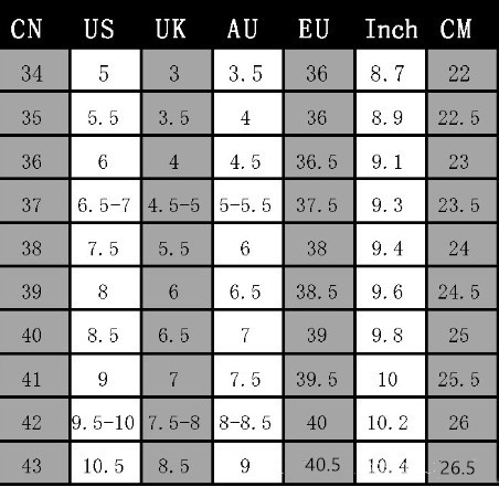 Size: 38, 39, 40, 41, 42, 43, 44, 45, 46, 47, 48