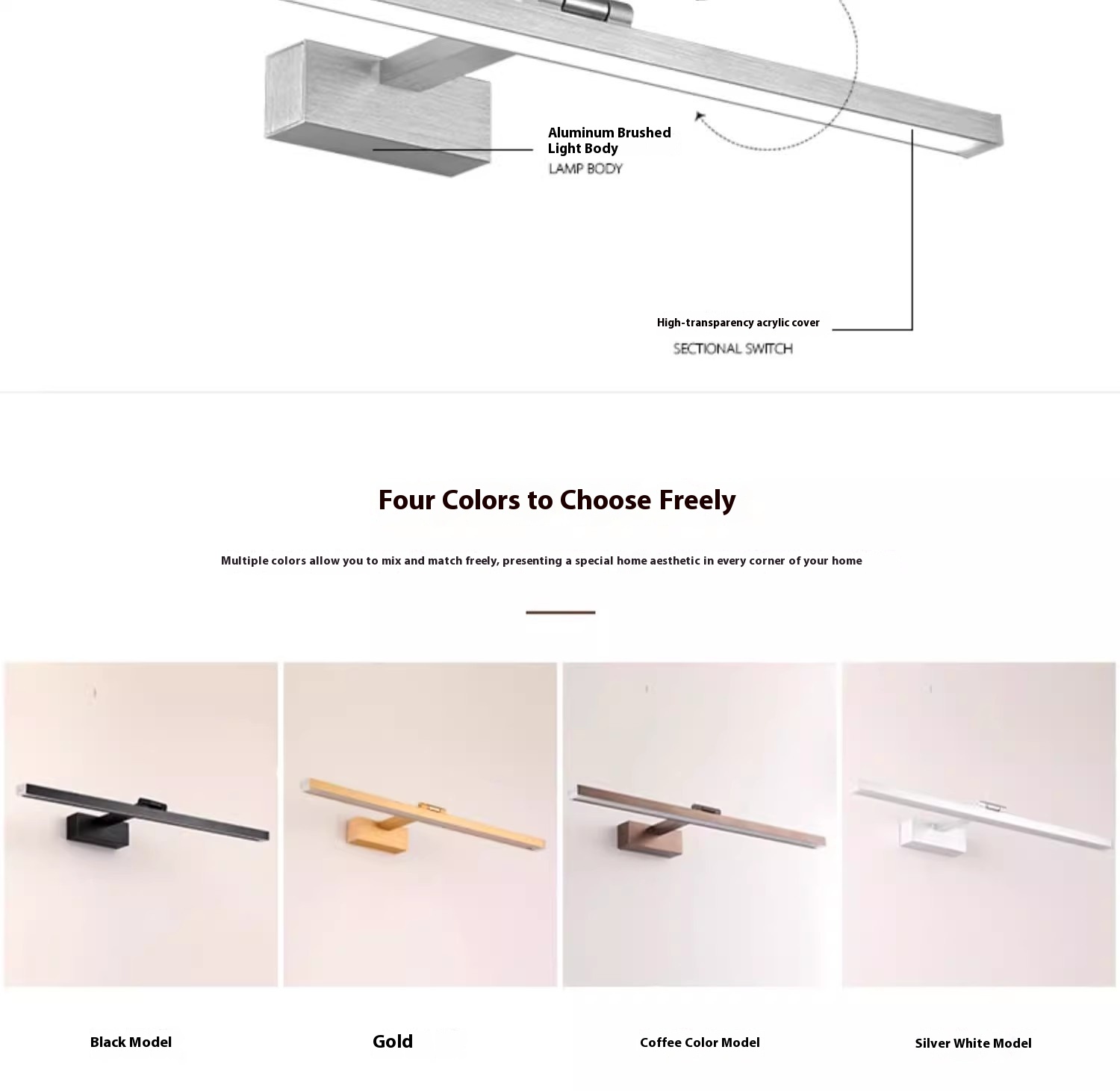 Light color: gold light body white light 6000K, gold light body warm light 3000K, gold light body 3 tone light, silver light body white light 6000K, silver light body warm light 3000K, silver light body 3 tone light, black light body white light 6000K, black light body warm light 3000K, black light body 3 tone light 3000K, Brown light body white light 6000K, Brown light body warm light 3000K, Brown light body 3 tone light