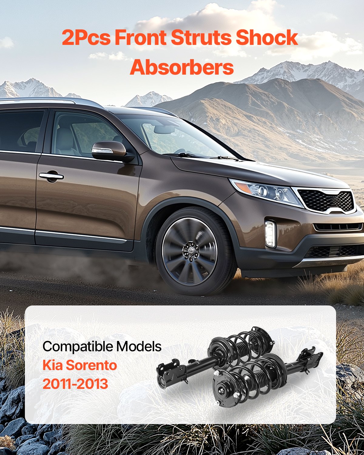 Vehicle Compatibility: These two front strut shock absorbers are compatible with 2011-2013 Kia Sorento models. Please confirm your vehicle details before purchase to ensure the correct fit.
