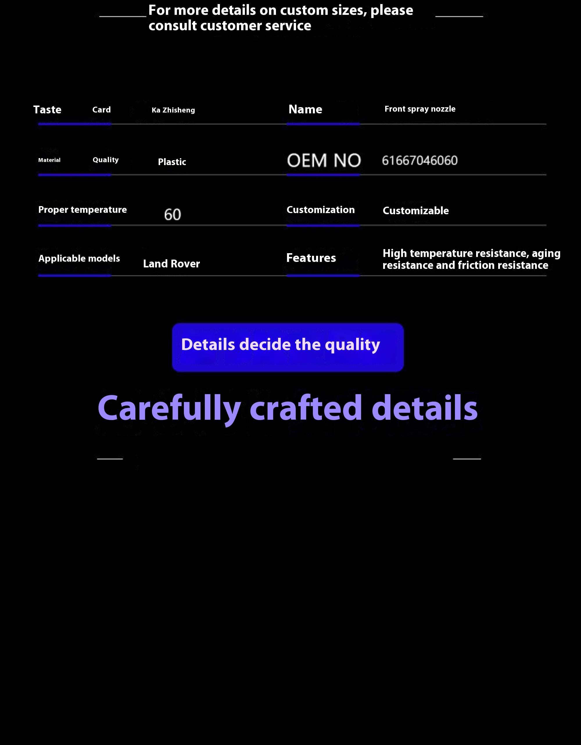 Product Details:Material: PlasticName: Front spray nozzleCompatible models: BMW 5 SeriesProduct Packing:Spray nozzle * 1