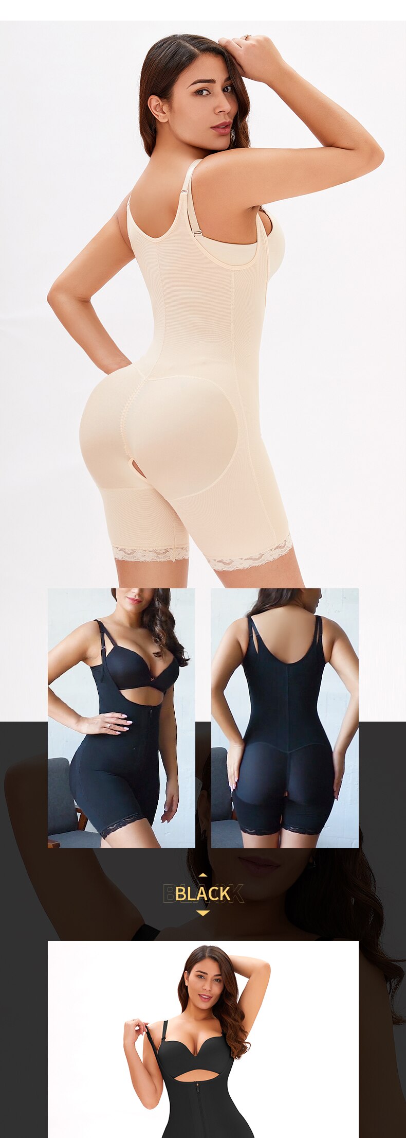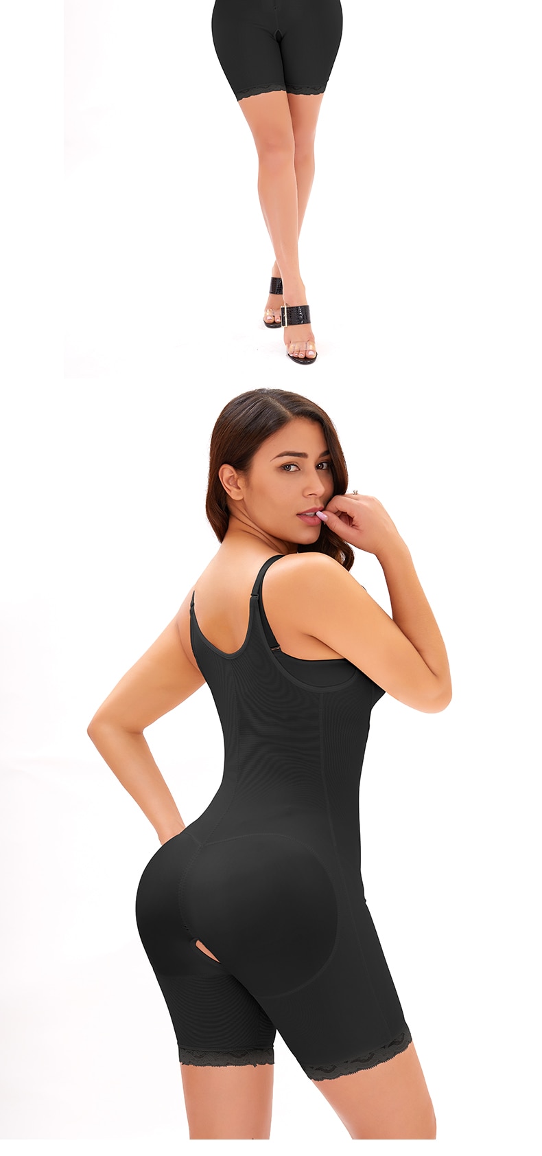 Main fabric composition: poly fiber (polyester)Function: Lift hips and shape up the abdomen, support the chest