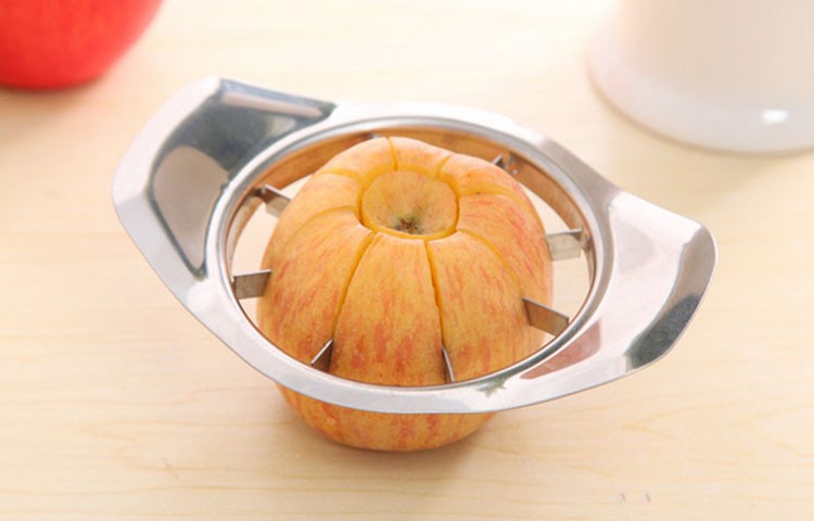 | Description: | All stainless steel, hard enough strength, easy to stain and easy to clean. Hands holding the handles, place cut fruit apples, pears and other fruits under, down firmly, you can easily cut fruits such as apples, pears, and separate fruit and flesh, cut fruit is also very beautiful, Oh |