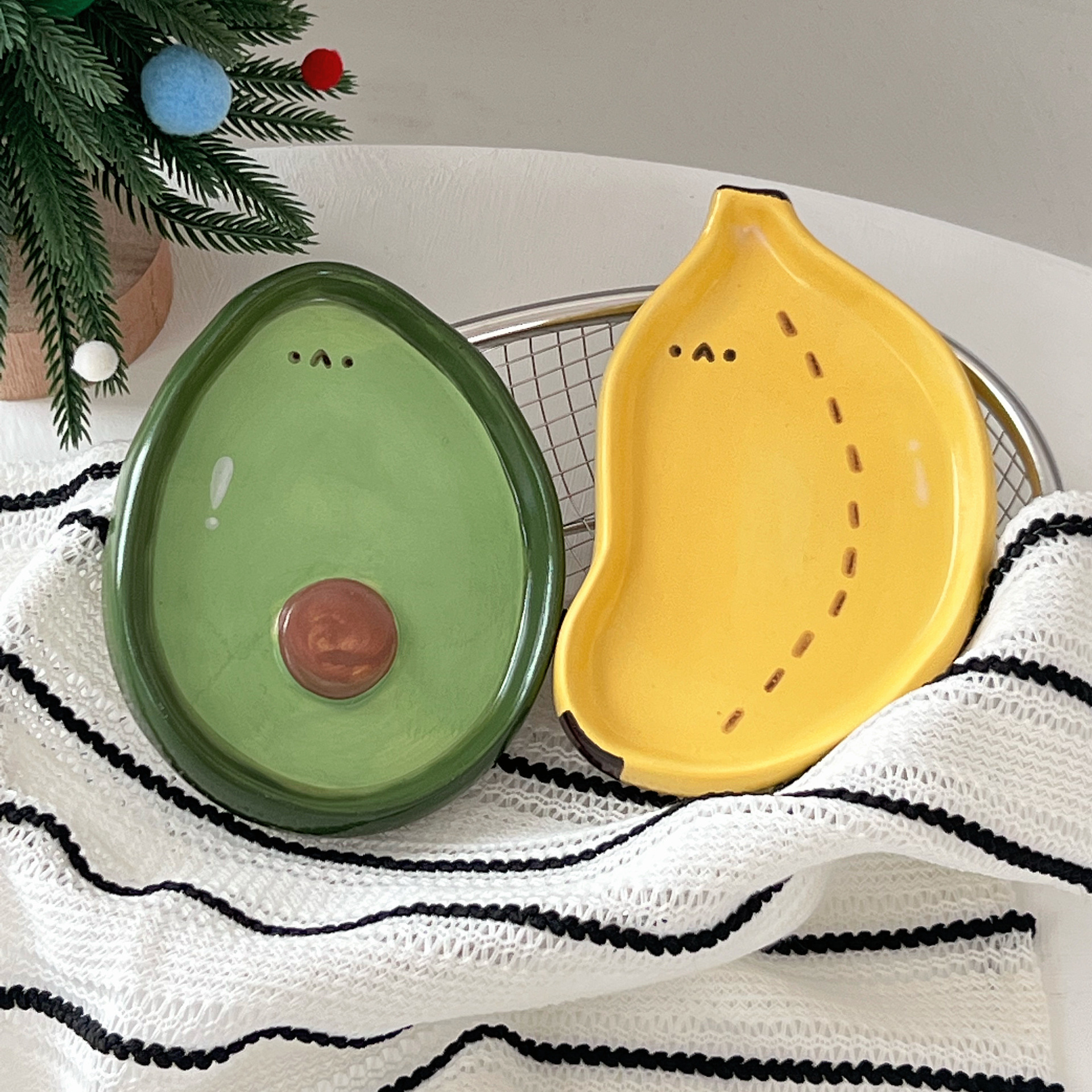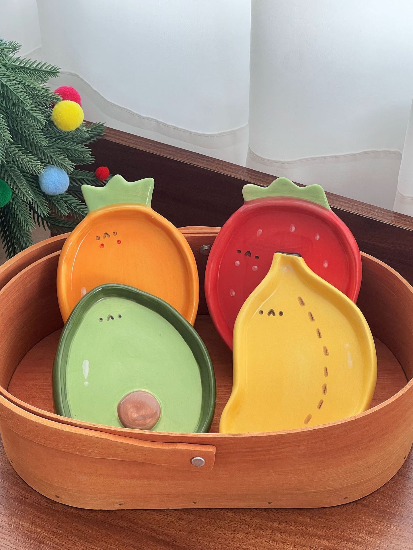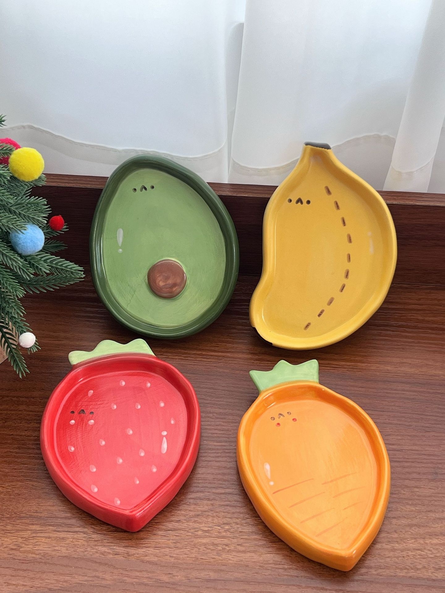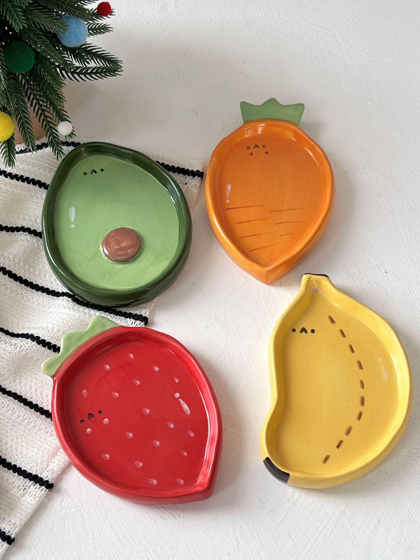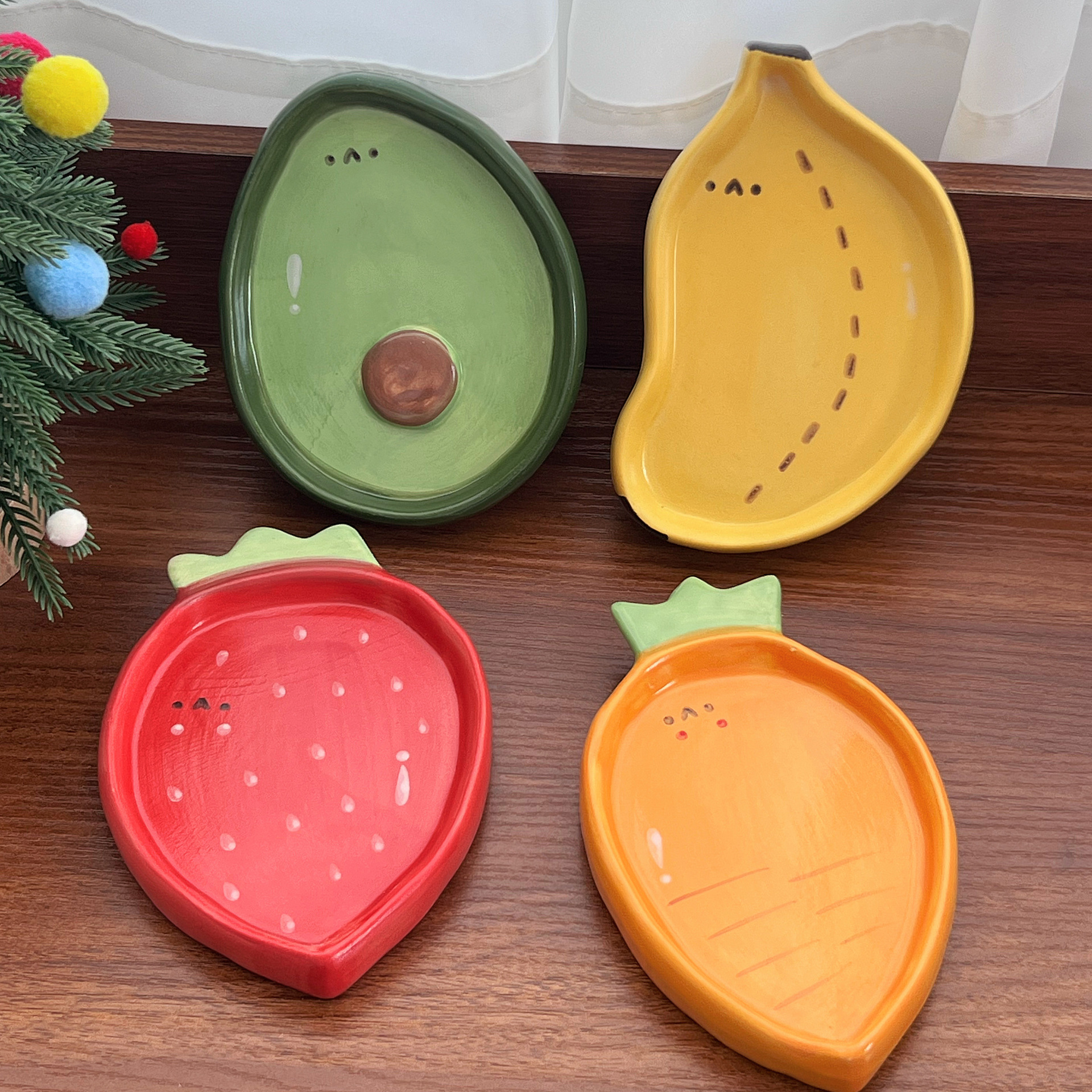 Color: 4-inch hand-painted dish strawberry, 4-inch hand-painted dish banana, 4-inch hand-painted dish avocado, 4-inch hand-painted dish carrot
