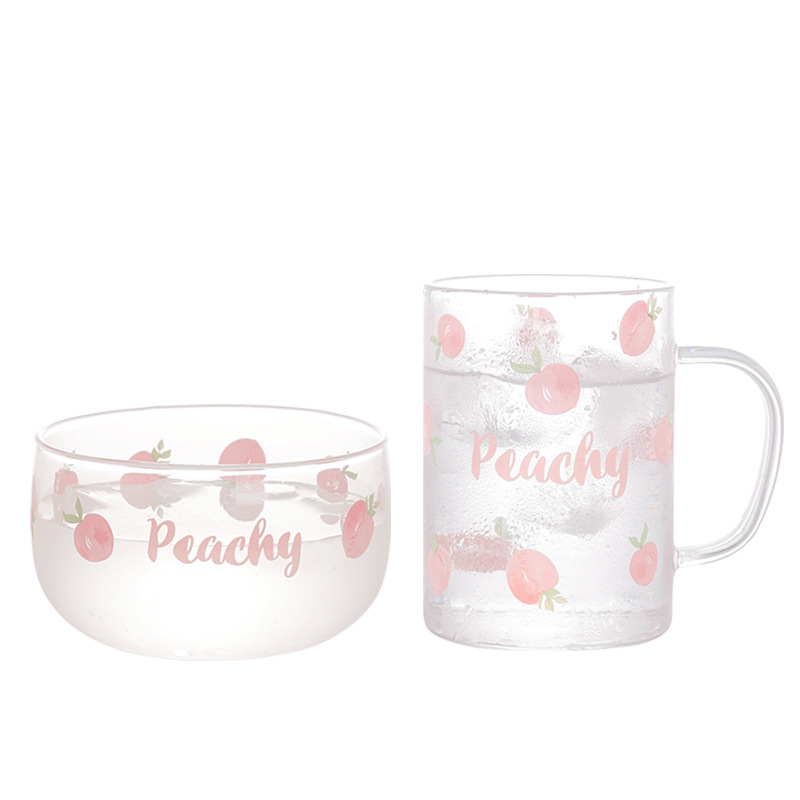 Color: pink peach bowl, pink peach (round cup), pink peach [handle cup], pink peach breakfast set [bowl + handle cup] free spoon, pink peach breakfast set (bowl + round cup) free spoon