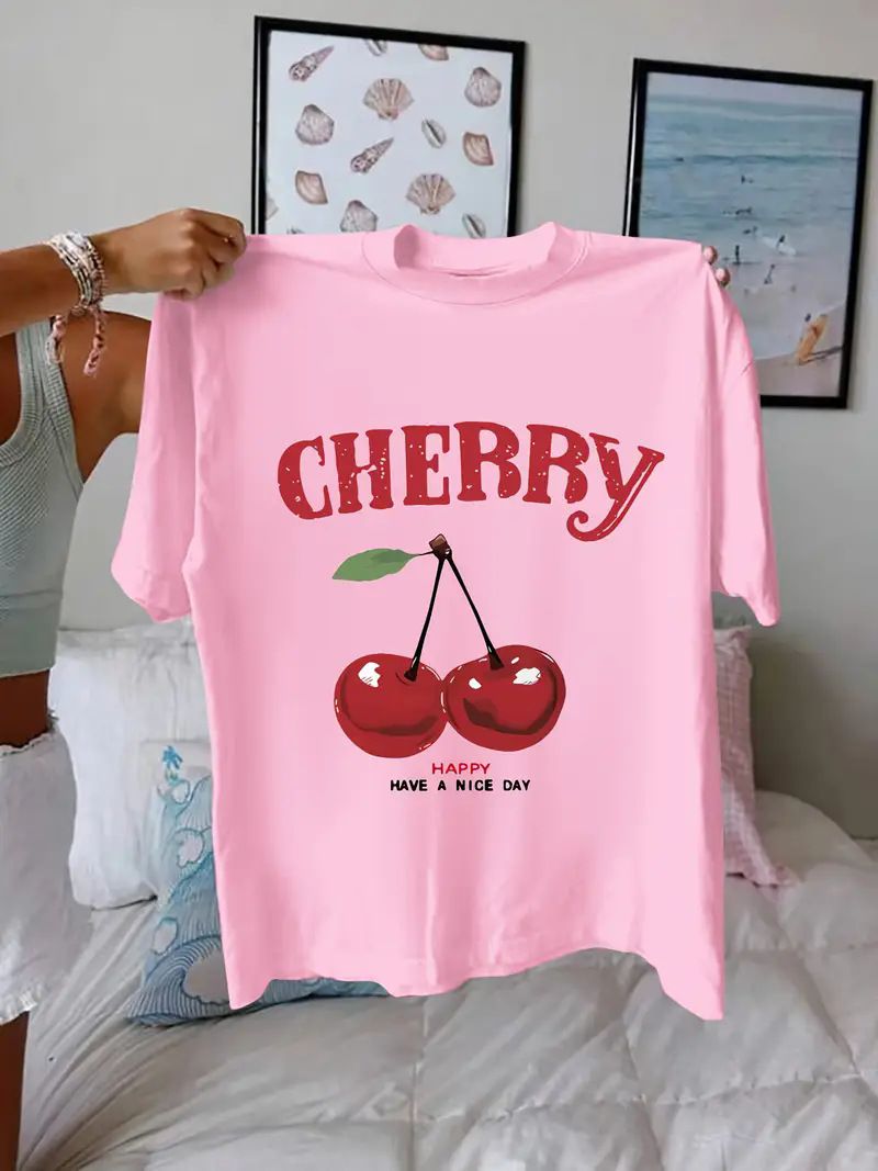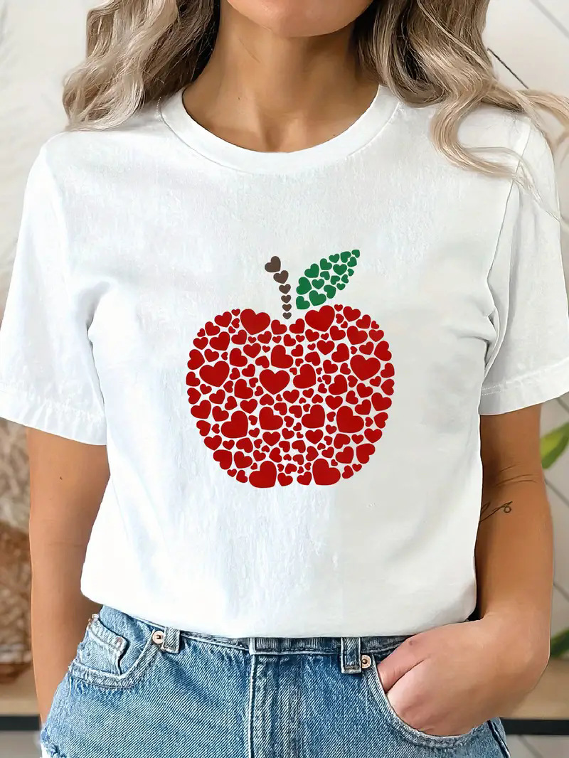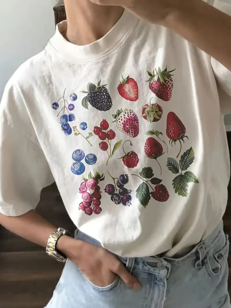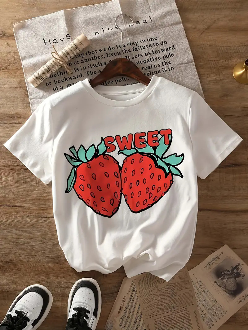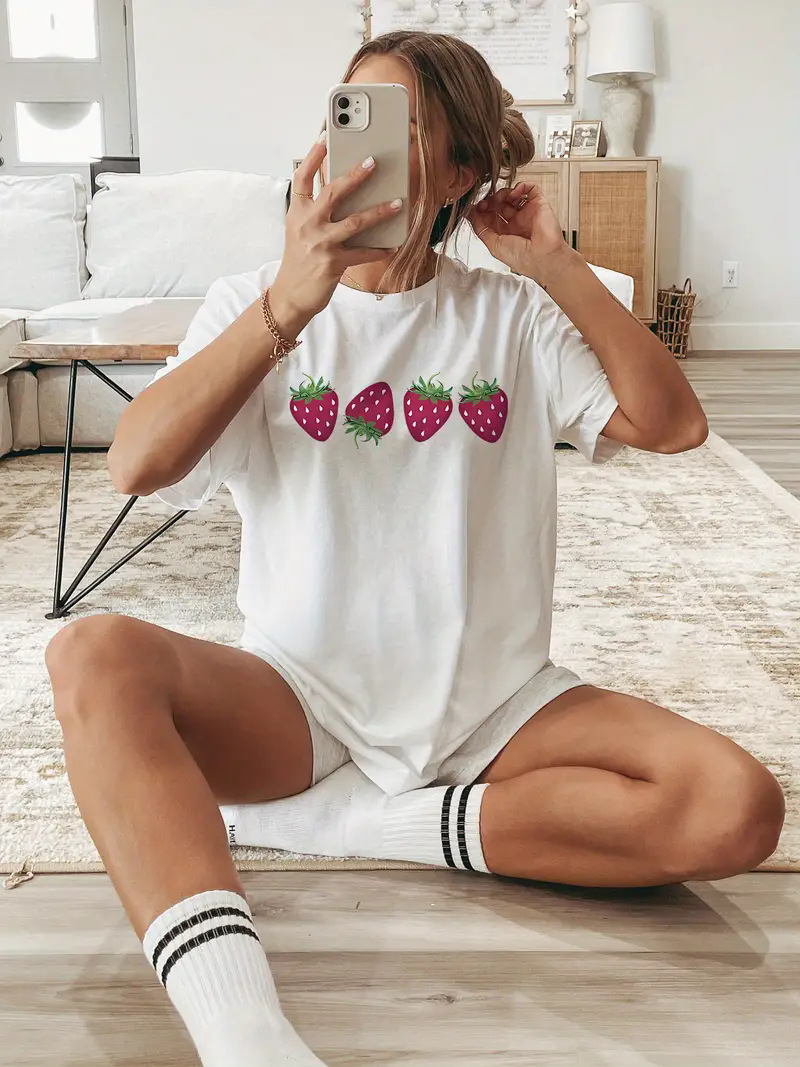 Fruit Strawberry Round Neck Short Sleeve Top For Women