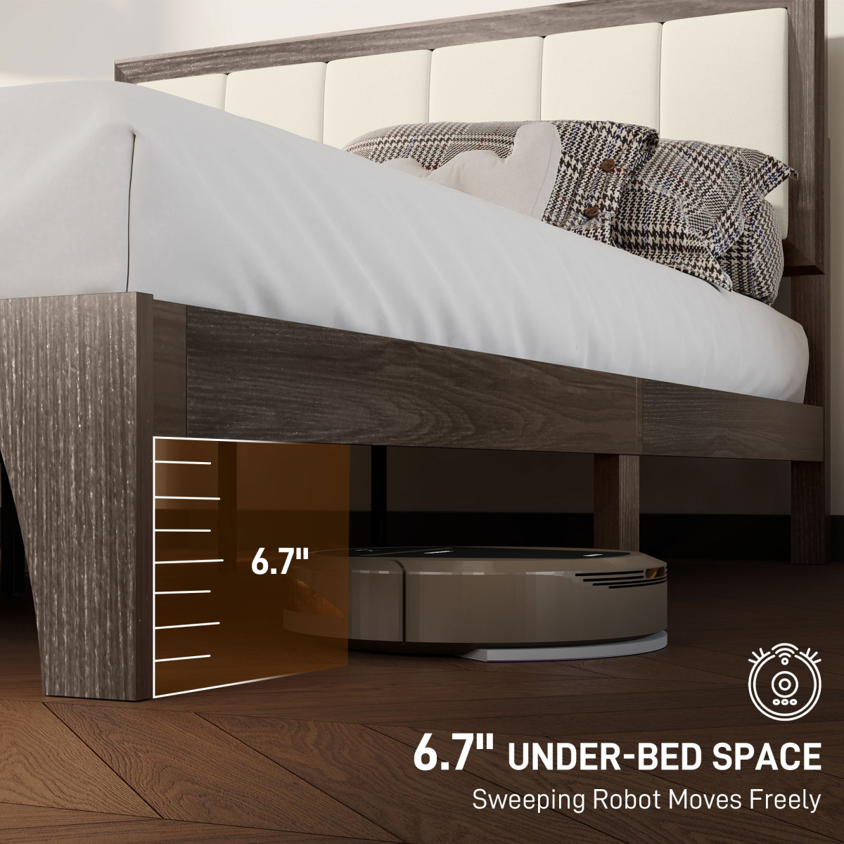 - 6.7" under-bed space for easy cleaning for sweeping Robot