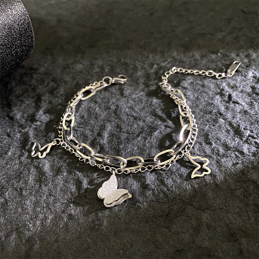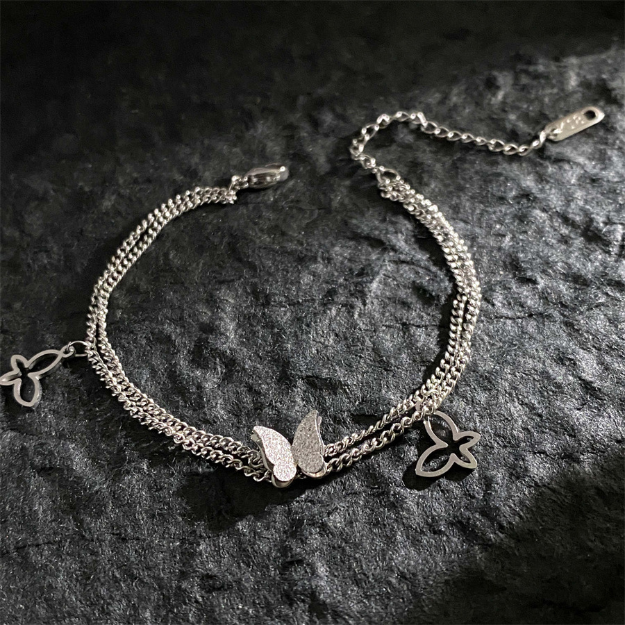 Color: Gold double-layer three-butterfly bracelet, Silver double-layer butterfly bracelet