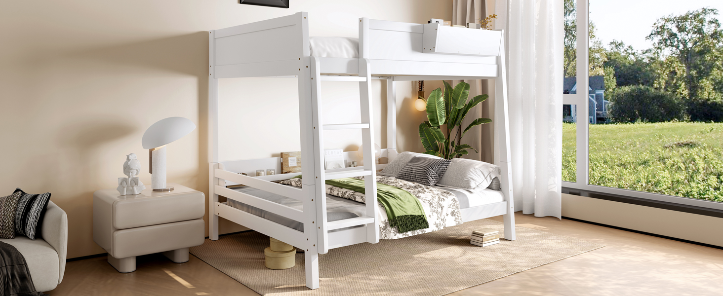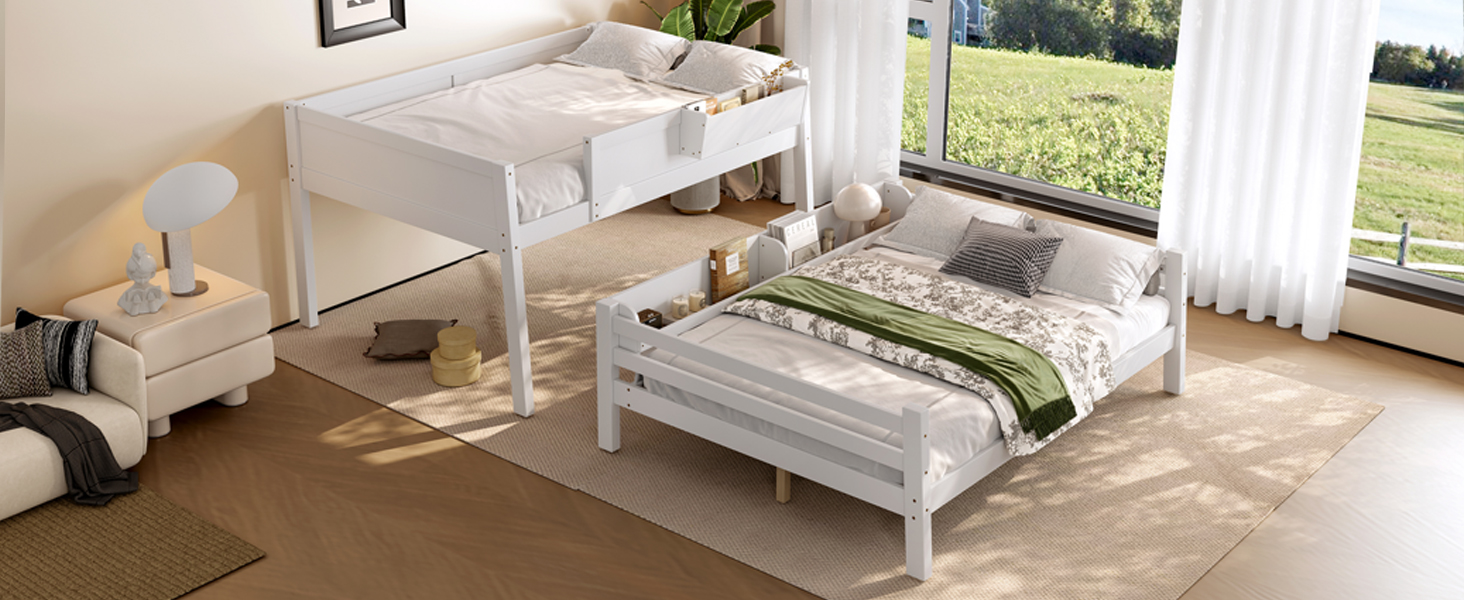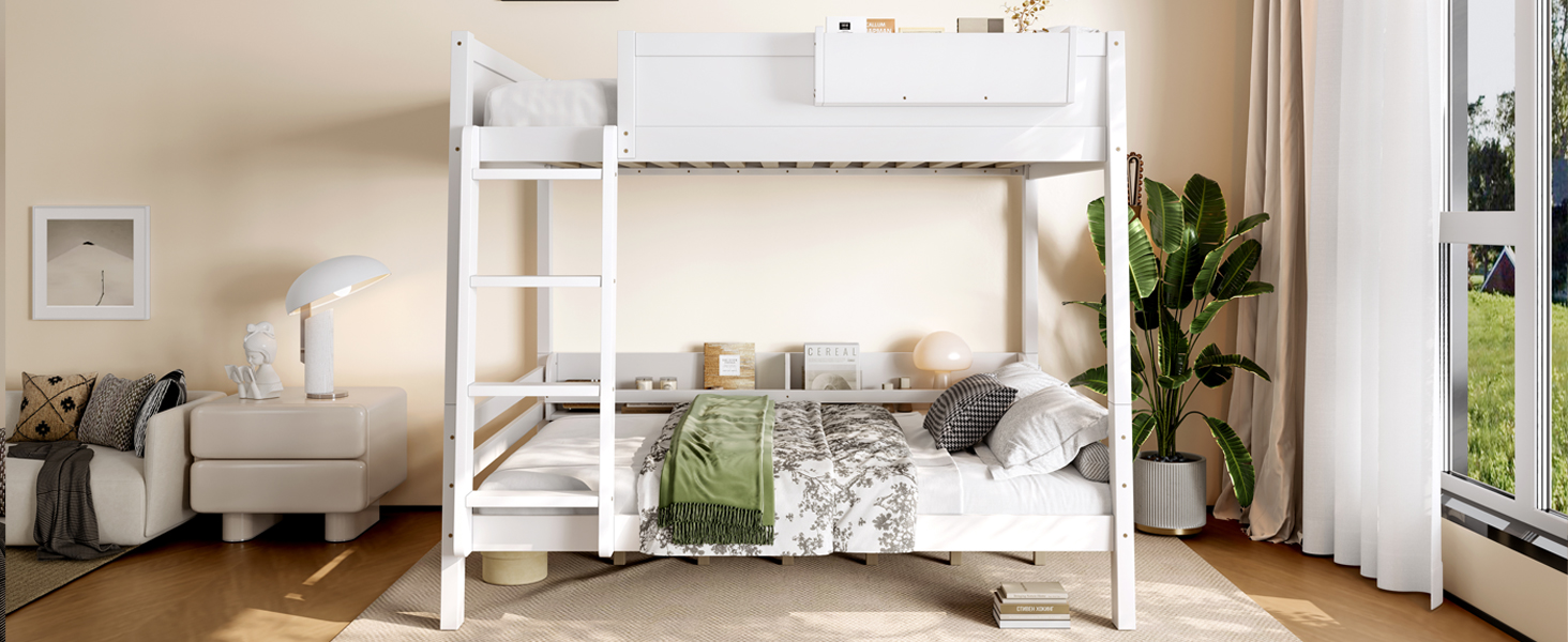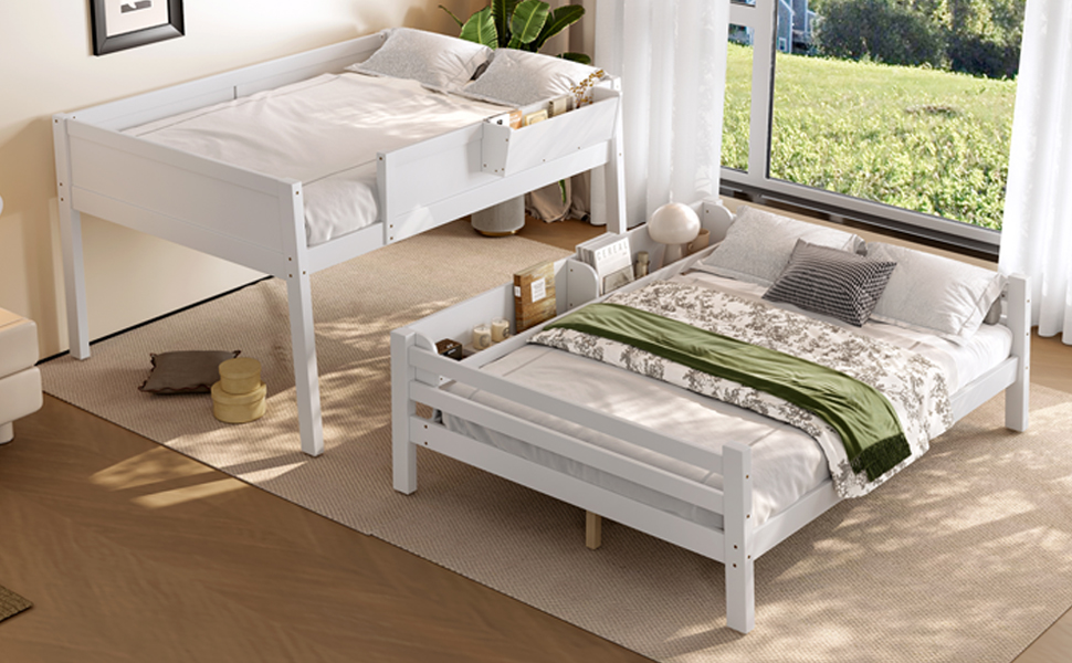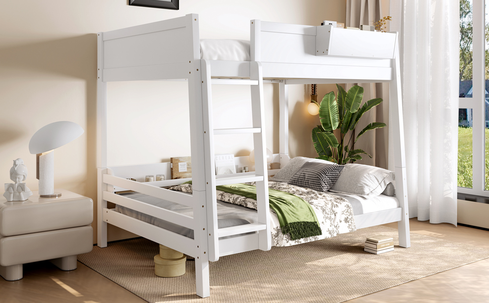 Product Name:Full Bunk Bed With Storage Shelf and Bookshelf,Wood Bunk Bed with Ladder and Guardrails,Detachable Design,White