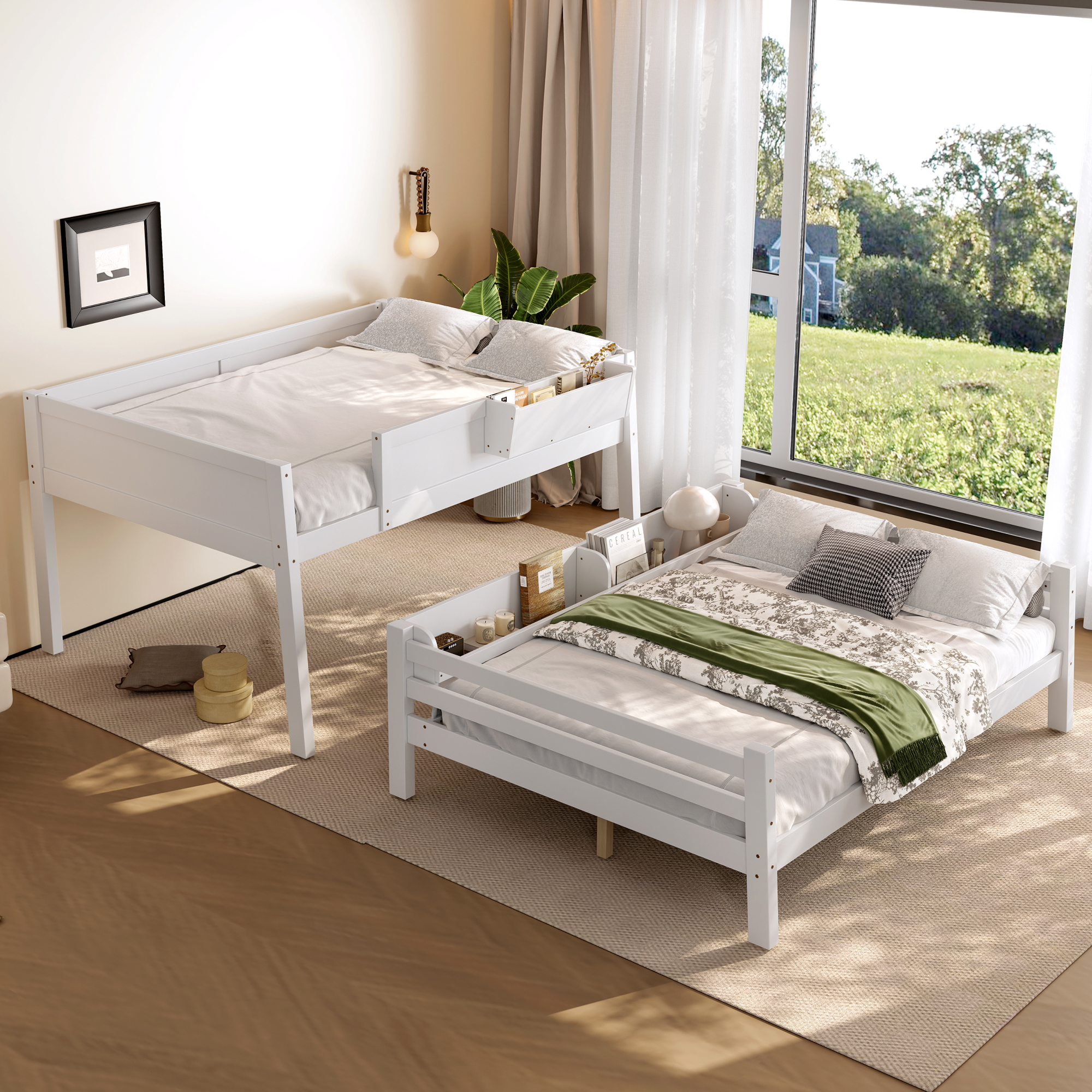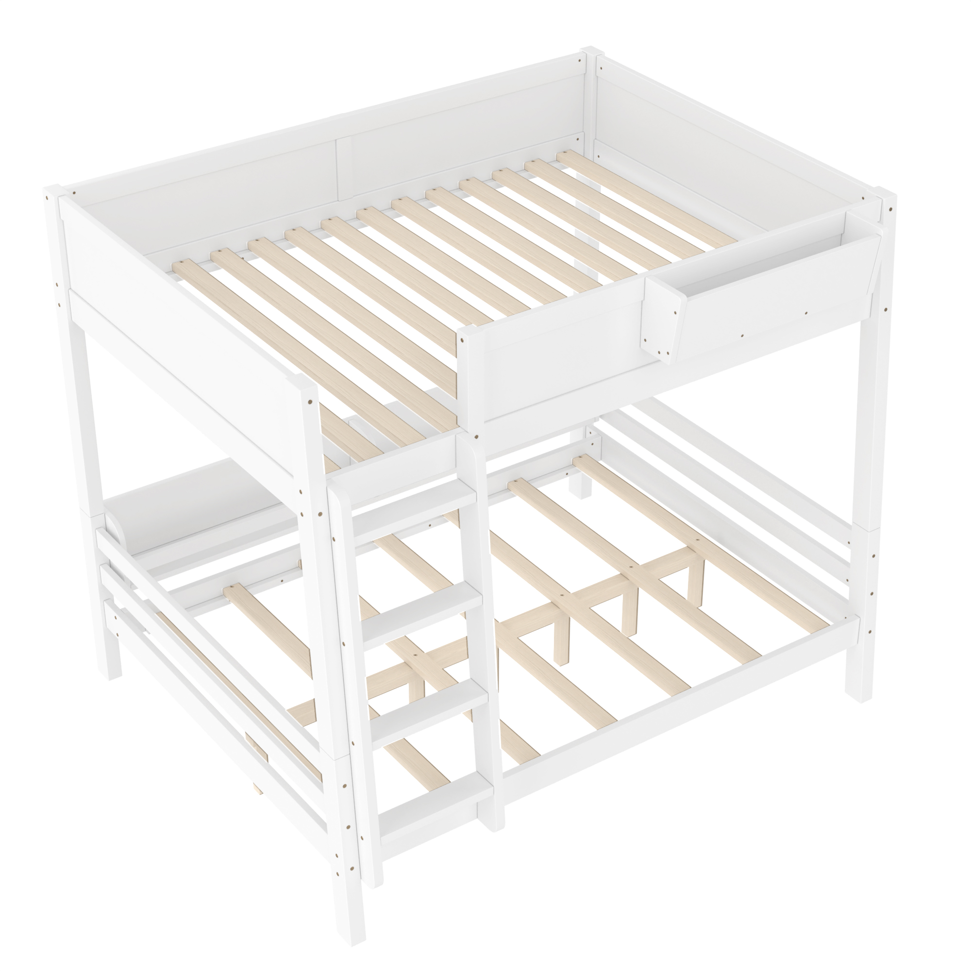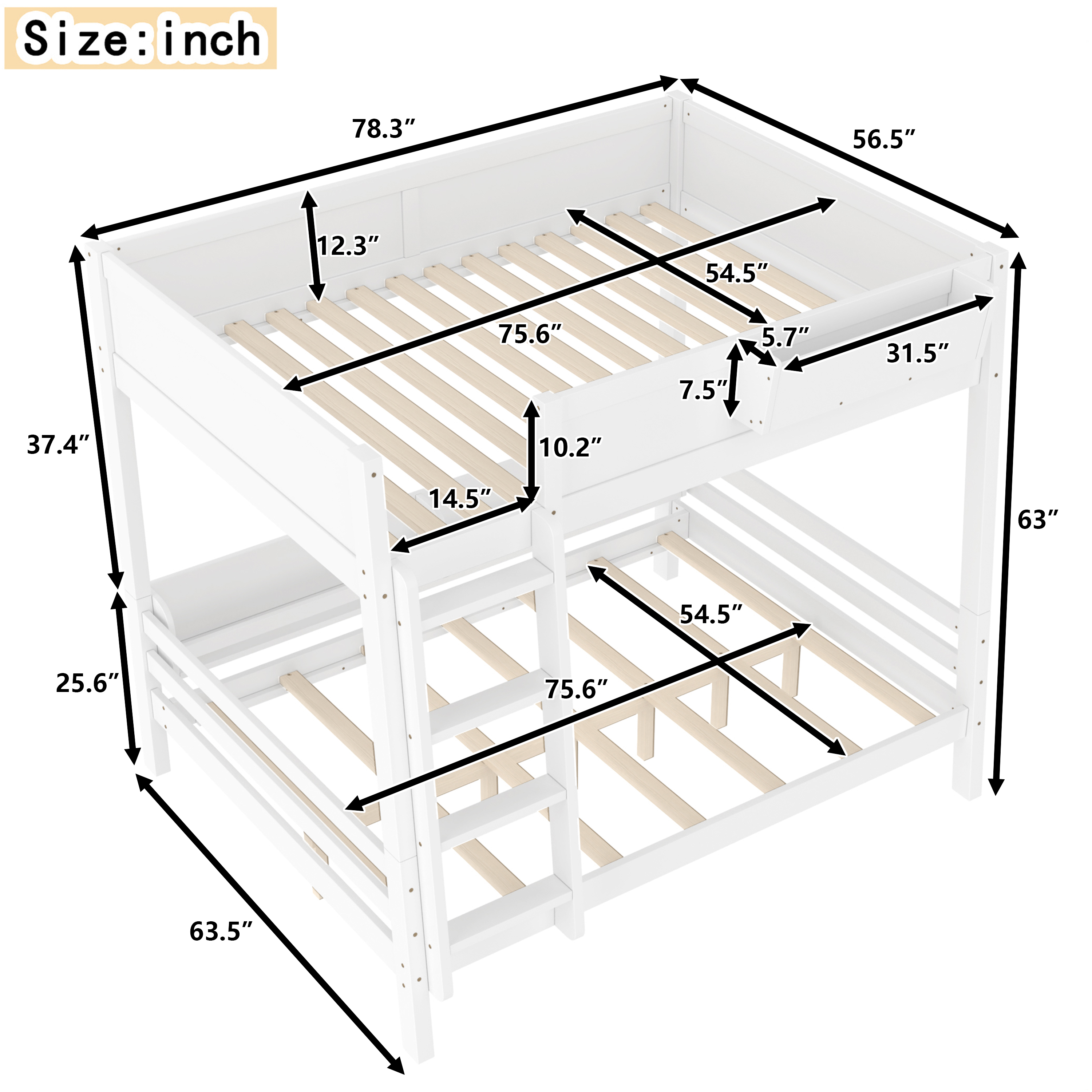 Product Name:Full Bunk Bed With Storage Shelf and Bookshelf,Wood Bunk Bed with Ladder and Guardrails,Detachable Design,White