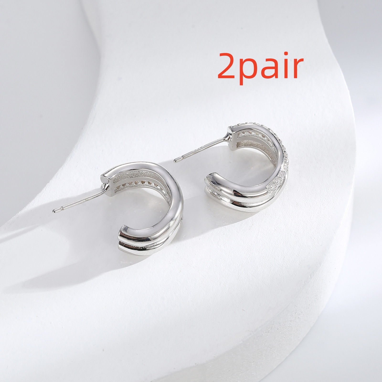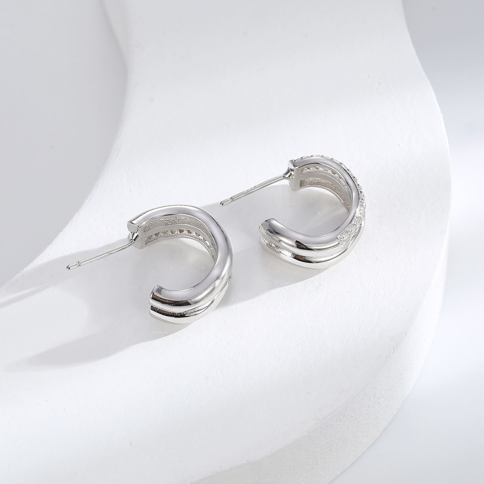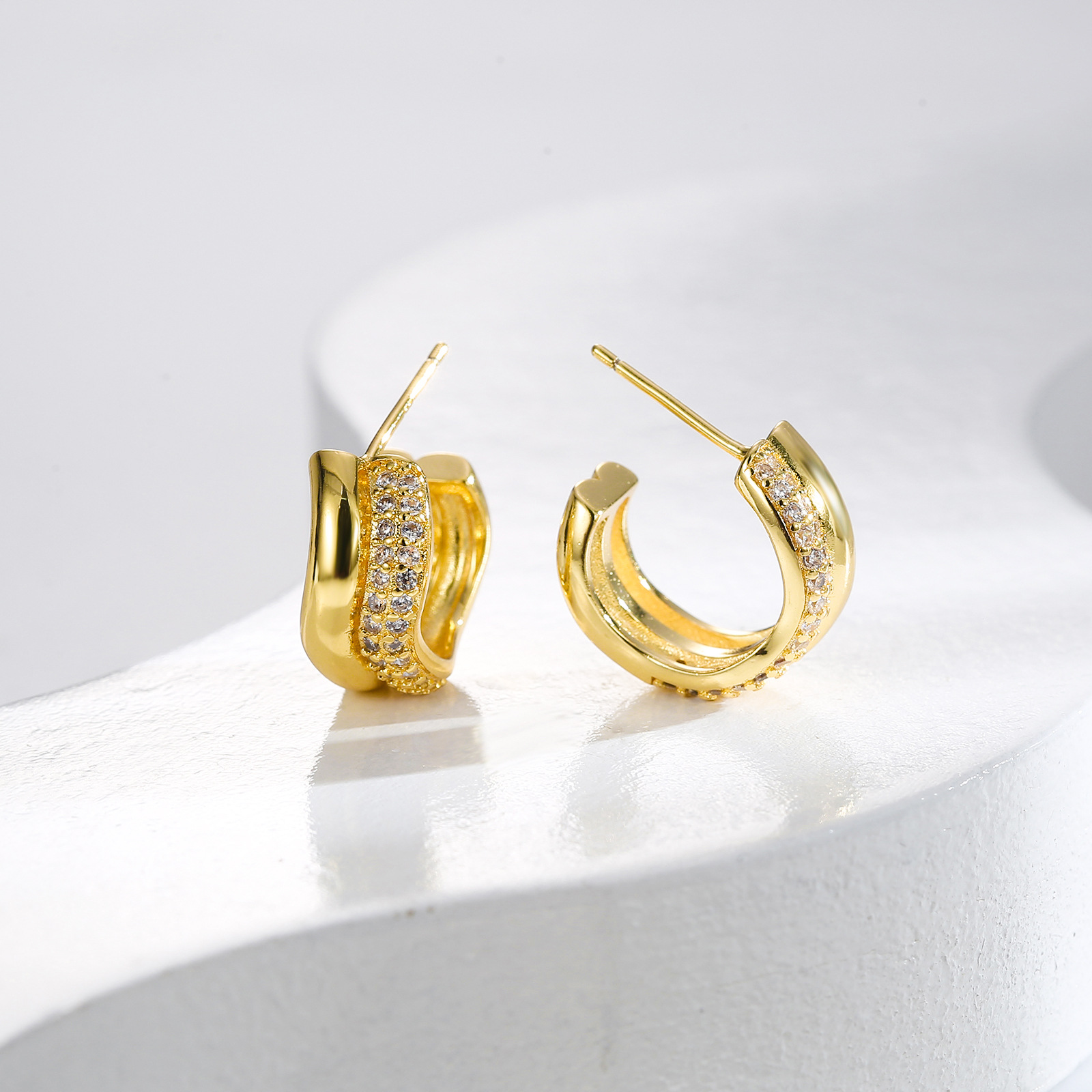 Full Diamond Female High-end Entry Lux C- Shaped Delicate Earrings