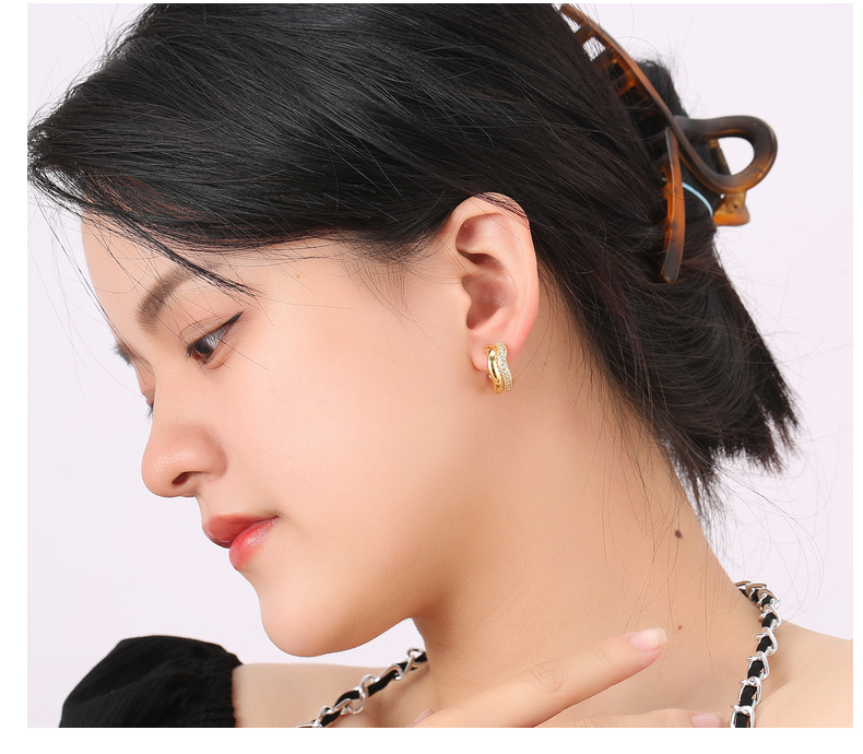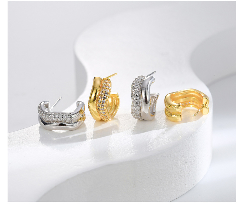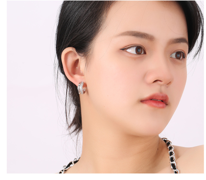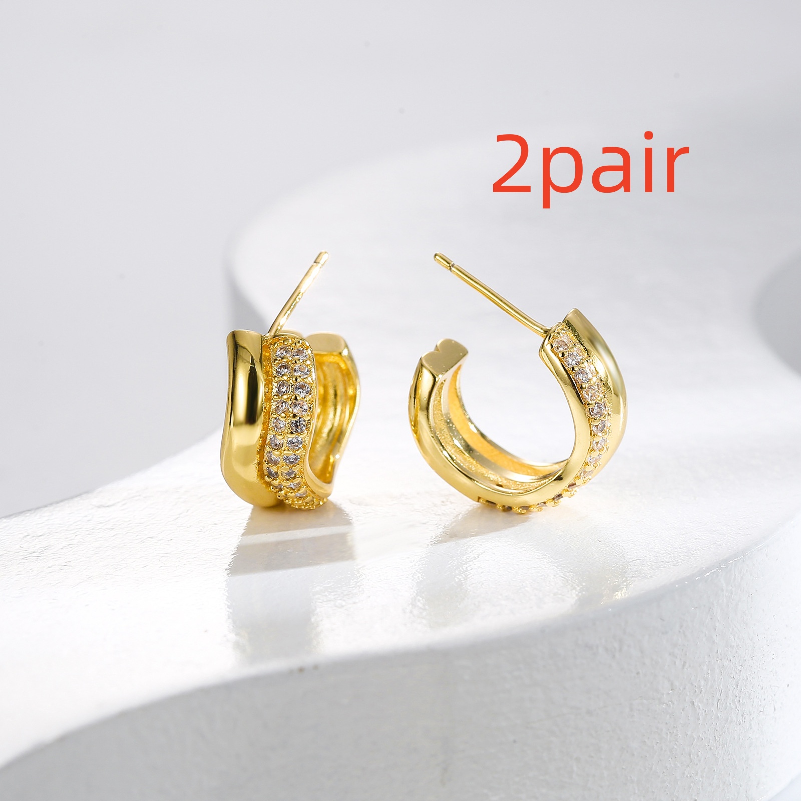 Full Diamond Female High-end Entry Lux C- Shaped Delicate Earrings