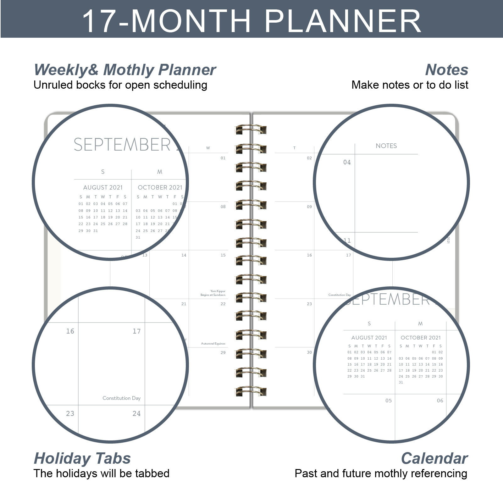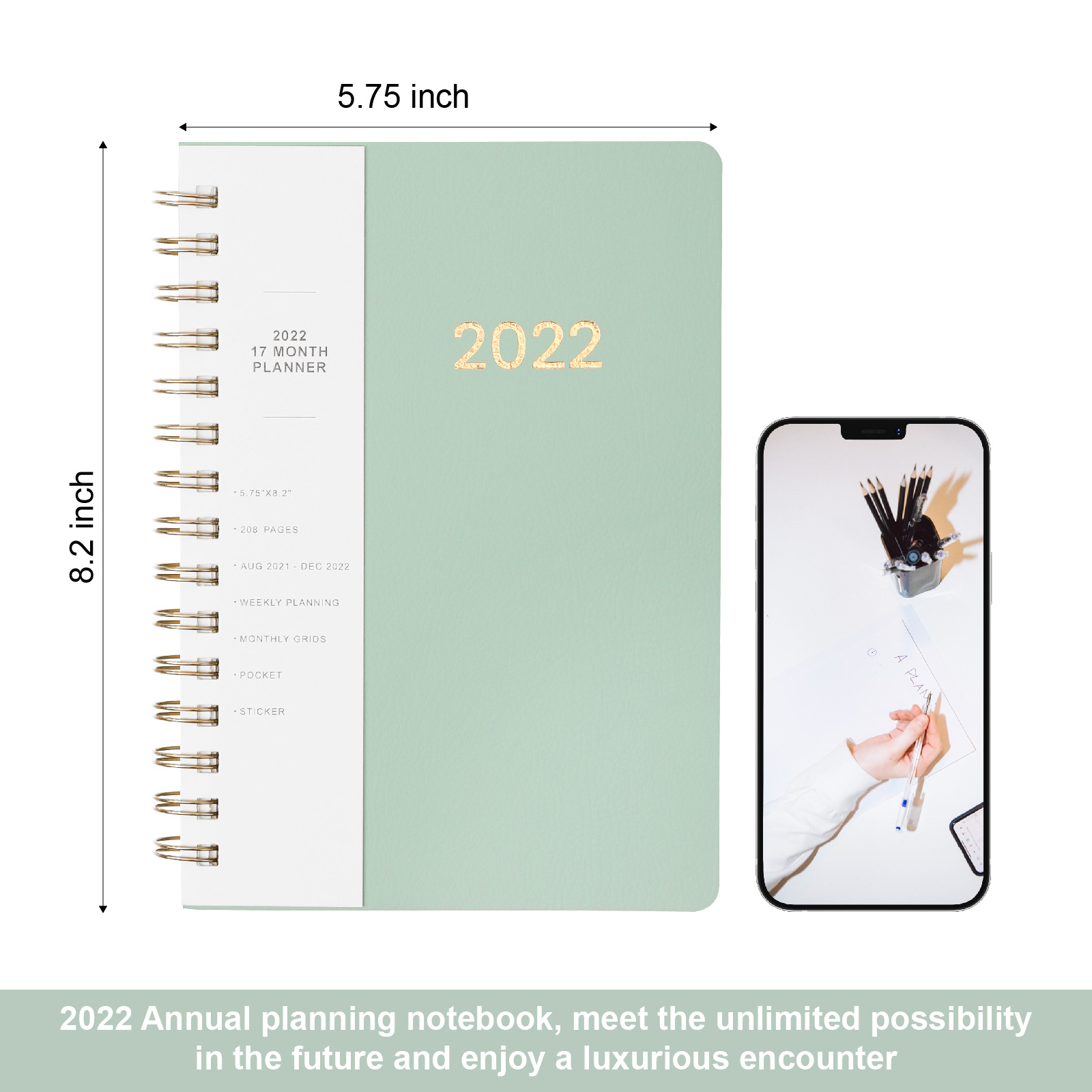 Specifications: 1 Piece 17 Months 2022 Week Planner per pack with pockets and month grid.