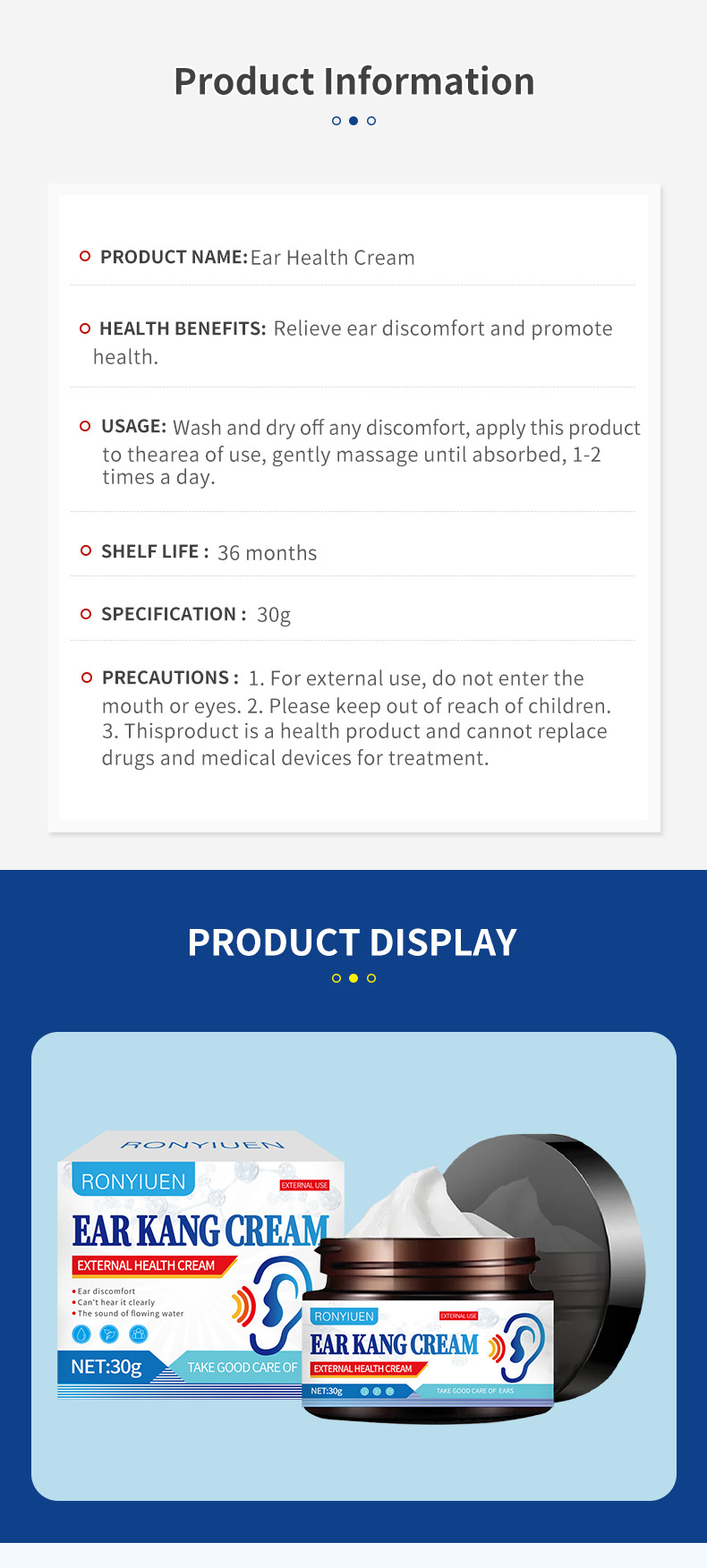 Full English Ear Rehabilitation Cream 30g Tinnitus Hearing Loss Ear Discomfort