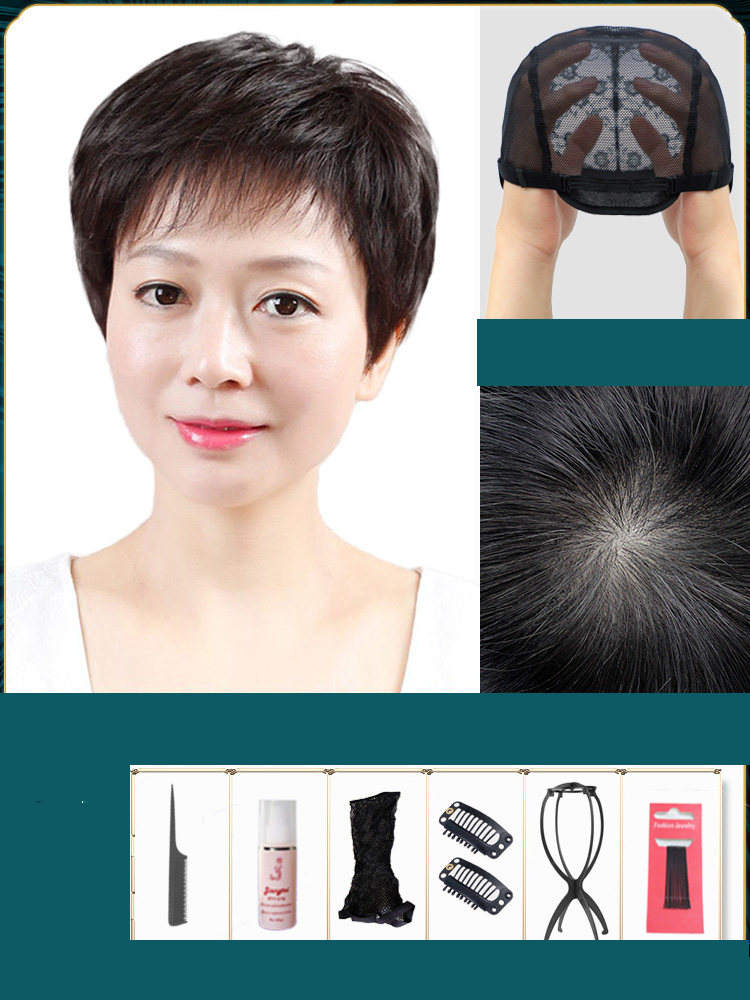 7set: All-hand woven natural black [real hair] [skin-friendly mesh + needle delivery center]