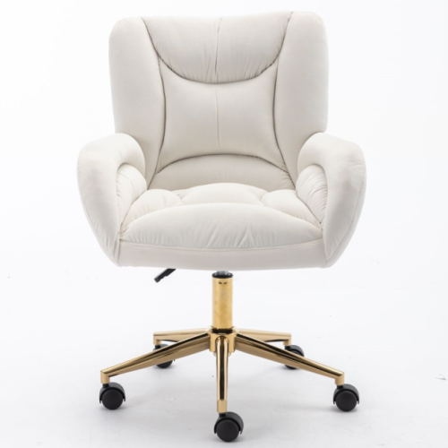 Product Name:Full KD Velvet Fabric Material Adjustable Height Swivel Home Office Chair For Indoor Office With Gold Legs, Ivory