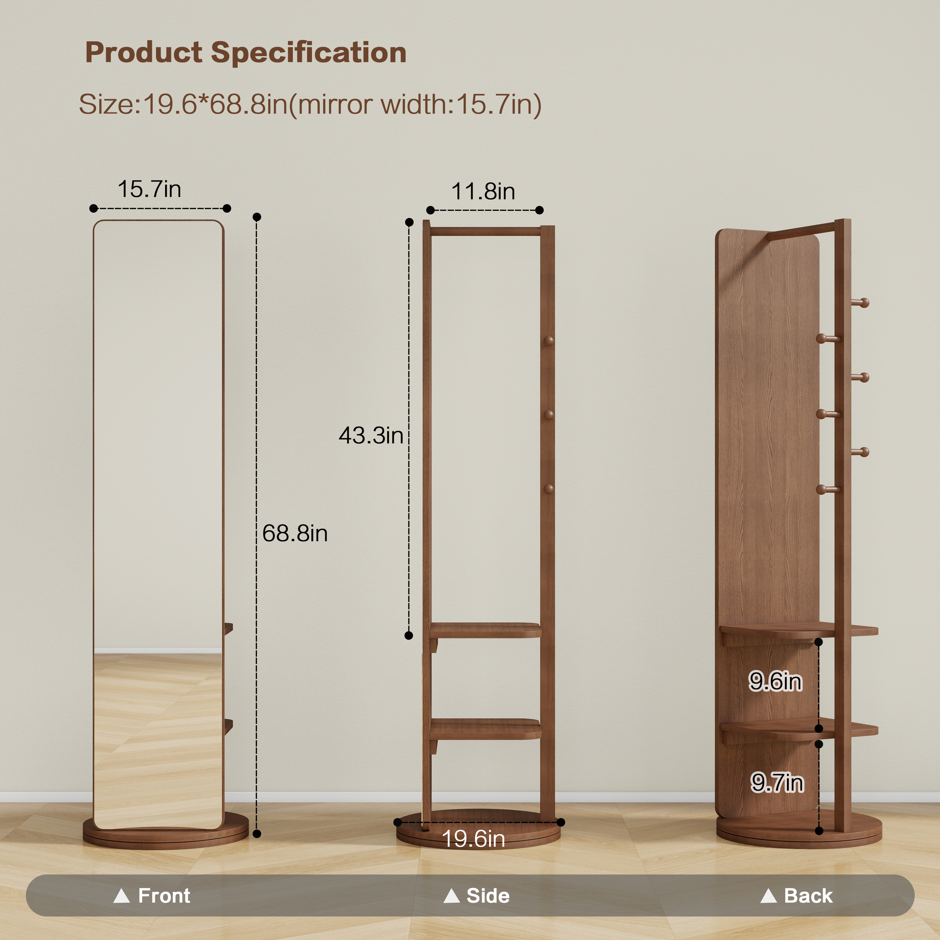 Product Information: Full-length mirror, solid wood + rubberwood + glass, 68.8*19.6 inches (mirror width: 15.7 inches) (walnut)