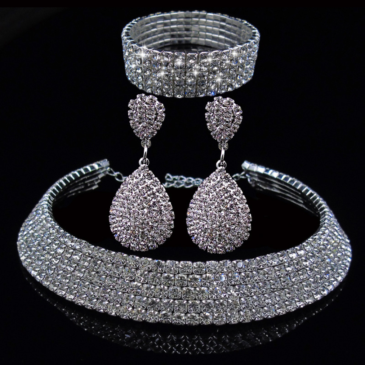 Color: 5 rows of collars + bracelets + earrings, 4 rows of collars + bracelets + earrings, 3 rows of collars + bracelets + earrings, 2 rows of collars + bracelets + earrings, 1 row of collars + bracelets + earrings