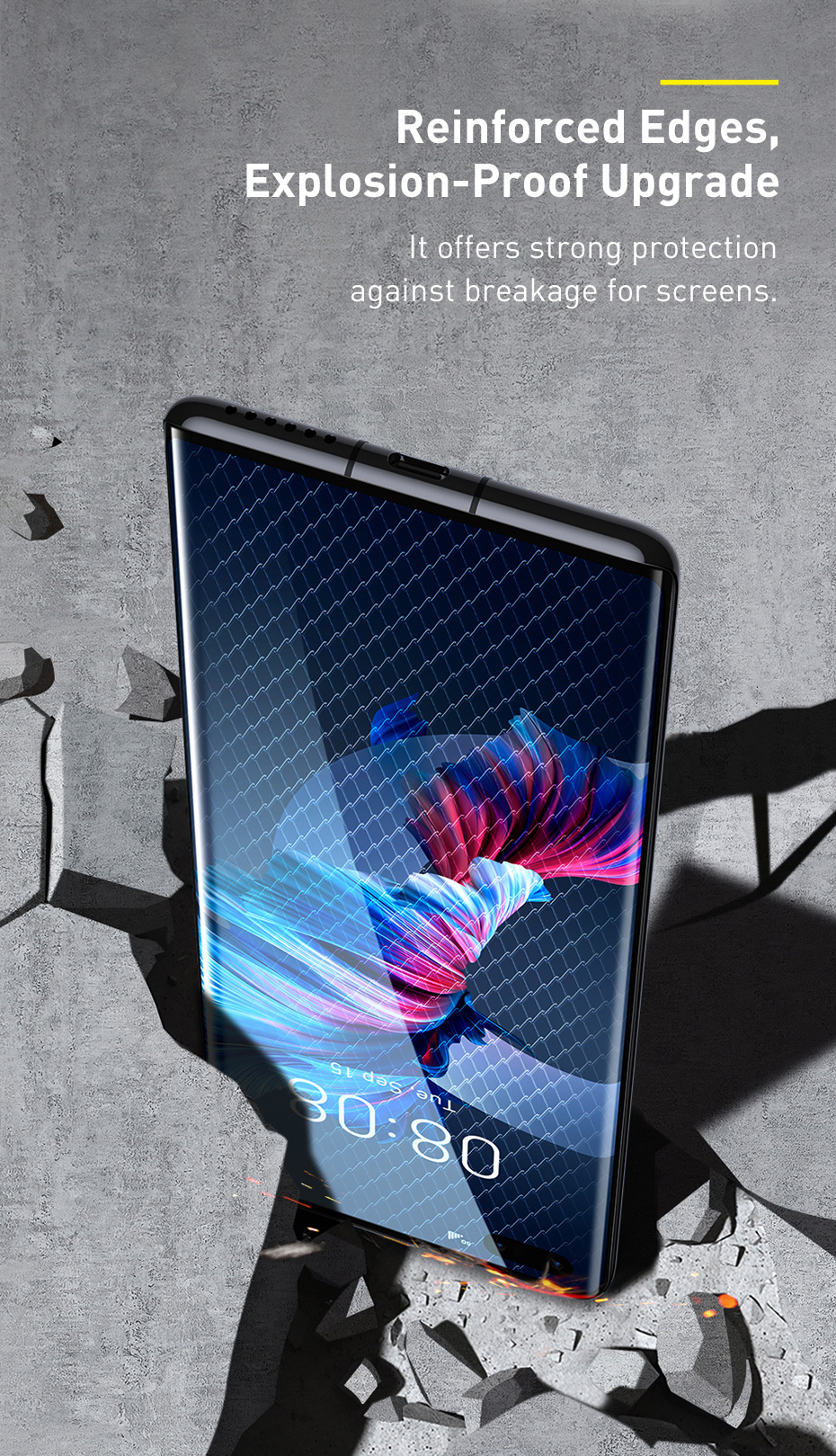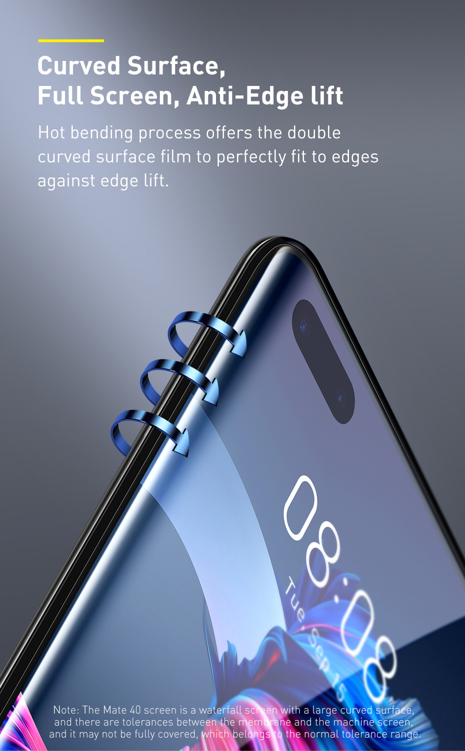 Baseus 0.25mm Full Screen Curved Surface Full Rubber Tempered Glass Film for Huawei Mate40 (1pcs/pack) Black (Include a Cleaning Kit + a Pasting Tool+a Scraper+ a Non-Slip Pad)