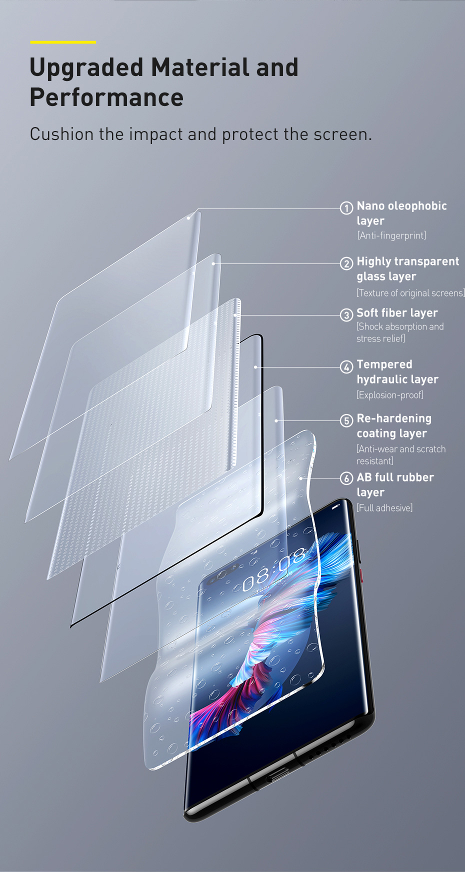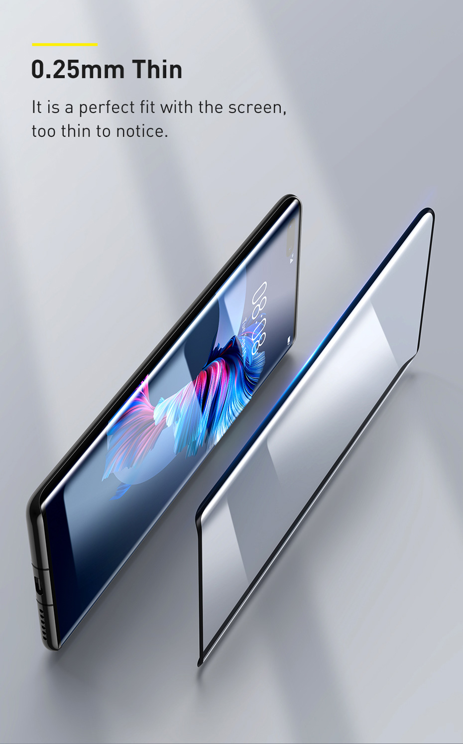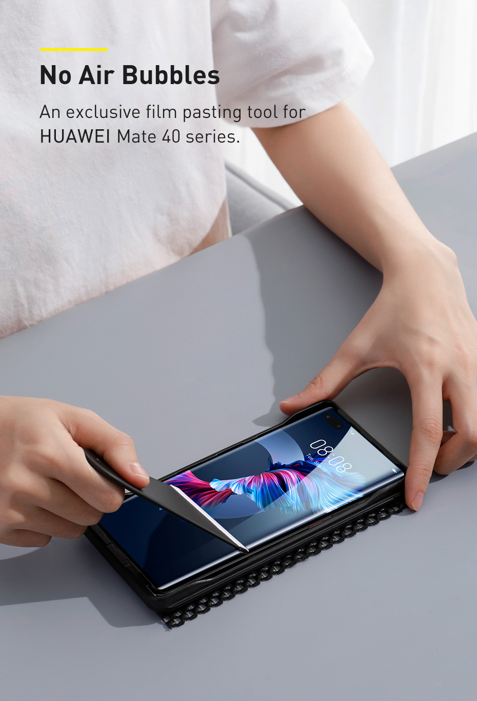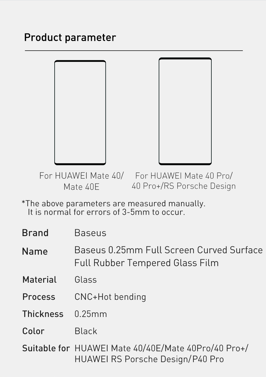 Baseus 0.25mm Full Screen Curved Surface Full Rubber Tempered Glass Film for Huawei Mate40 Pro/Pro+/RS Porsche Design (1pcs/pack) Black (Include a Cleaning Kit + a Pasting Tool+a Scraper+ a Non-Slip Pad)