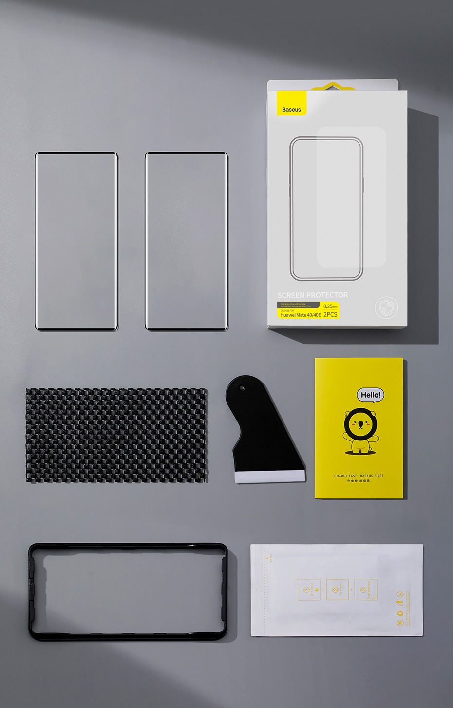 Baseus 0.25mm Full Screen Curved Surface Full Rubber Tempered Glass Film for Huawei Mate40 (2pcs/pack) Black (Include a Cleaning Kit + a Pasting Tool+a Scraper+ a Non-Slip Pad)