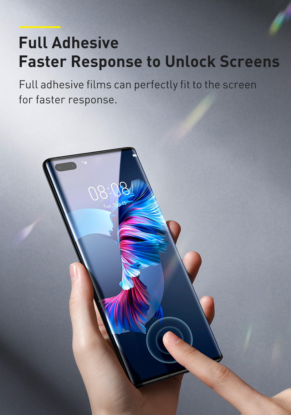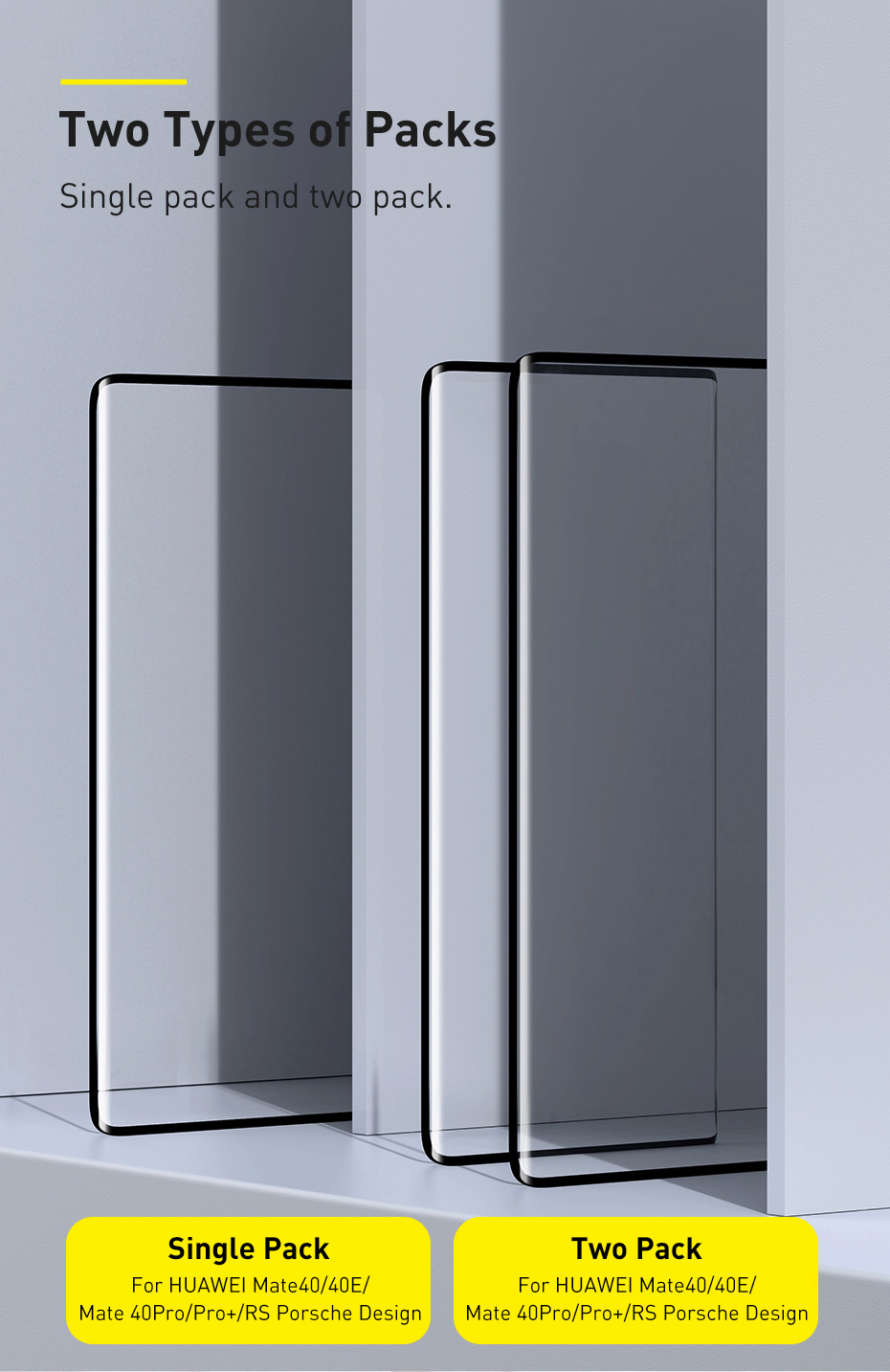 Baseus 0.25mm Full Screen Curved Surface Full Rubber Tempered Glass Film for Huawei Mate40 Pro/Pro+/RS Porsche Design (2pcs/pack) Black (Include a Cleaning Kit + a Pasting Tool+a Scraper+ a Non-Slip Pad)