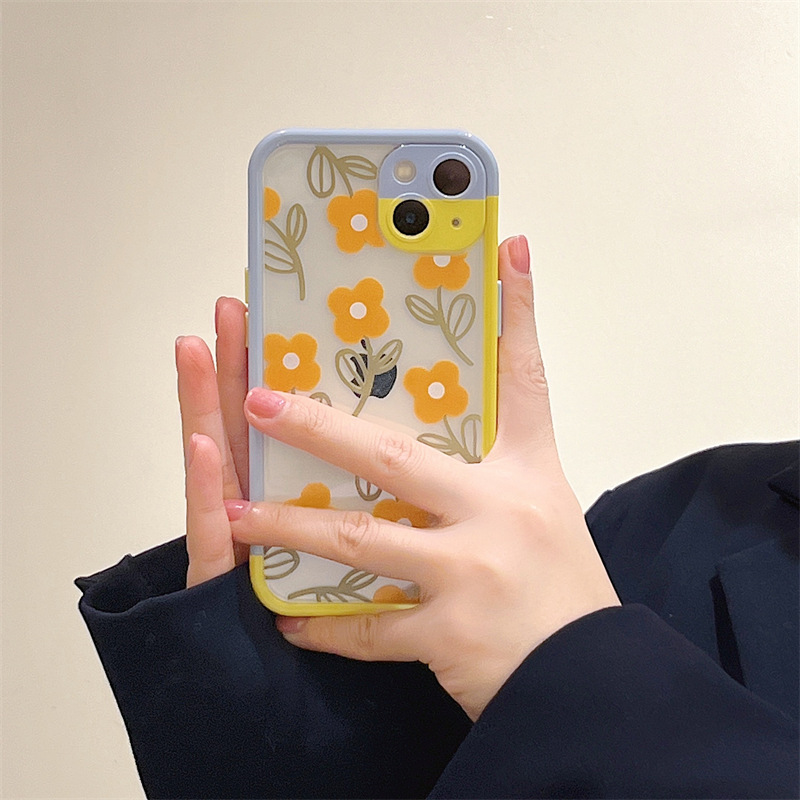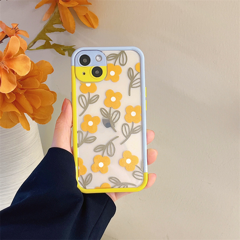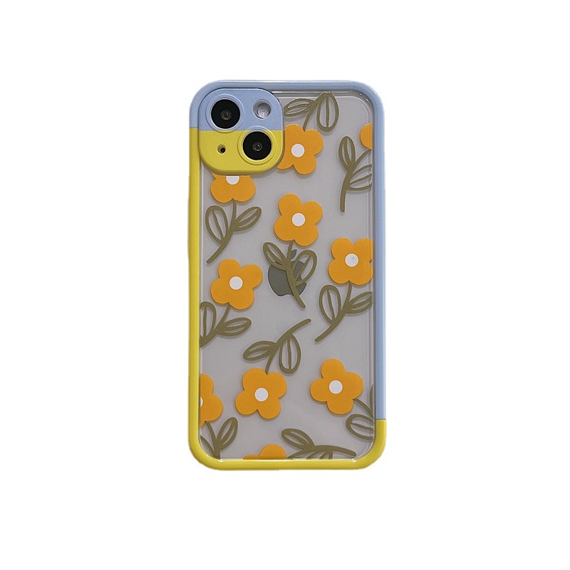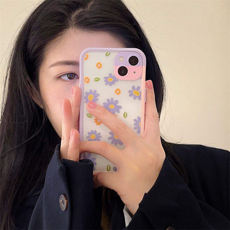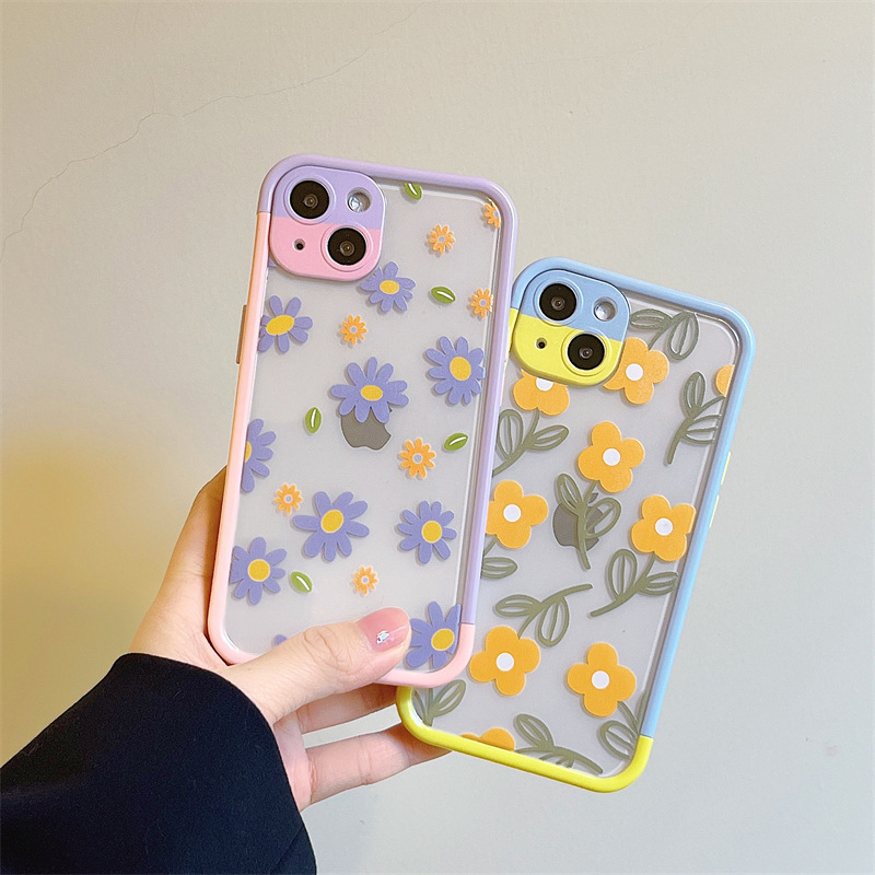 Color: Contrast color frame TPU summer style flowers purple daisies, hit color border TPU summer style flowers yellow flowers