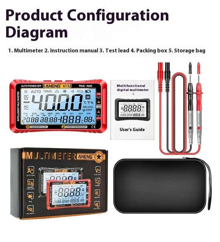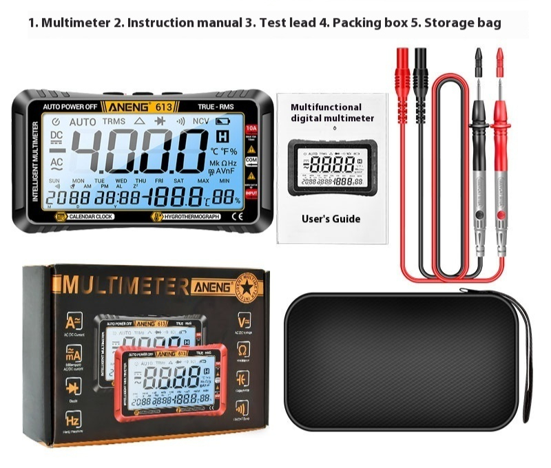 Measurement function: AC/DC voltage/AC/DC current/resistance/capacitance/frequency/temperature/diode AC voltage accuracy: ±(1.5)