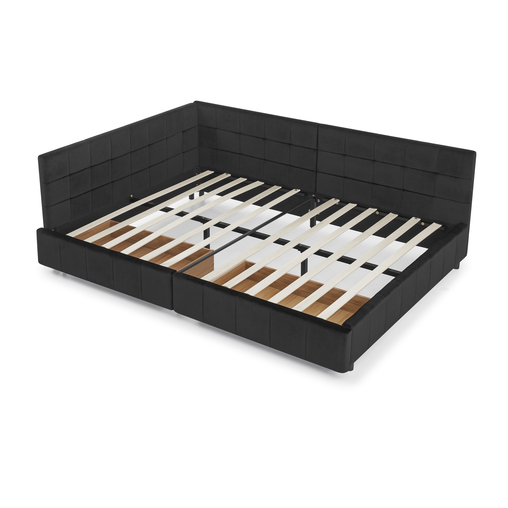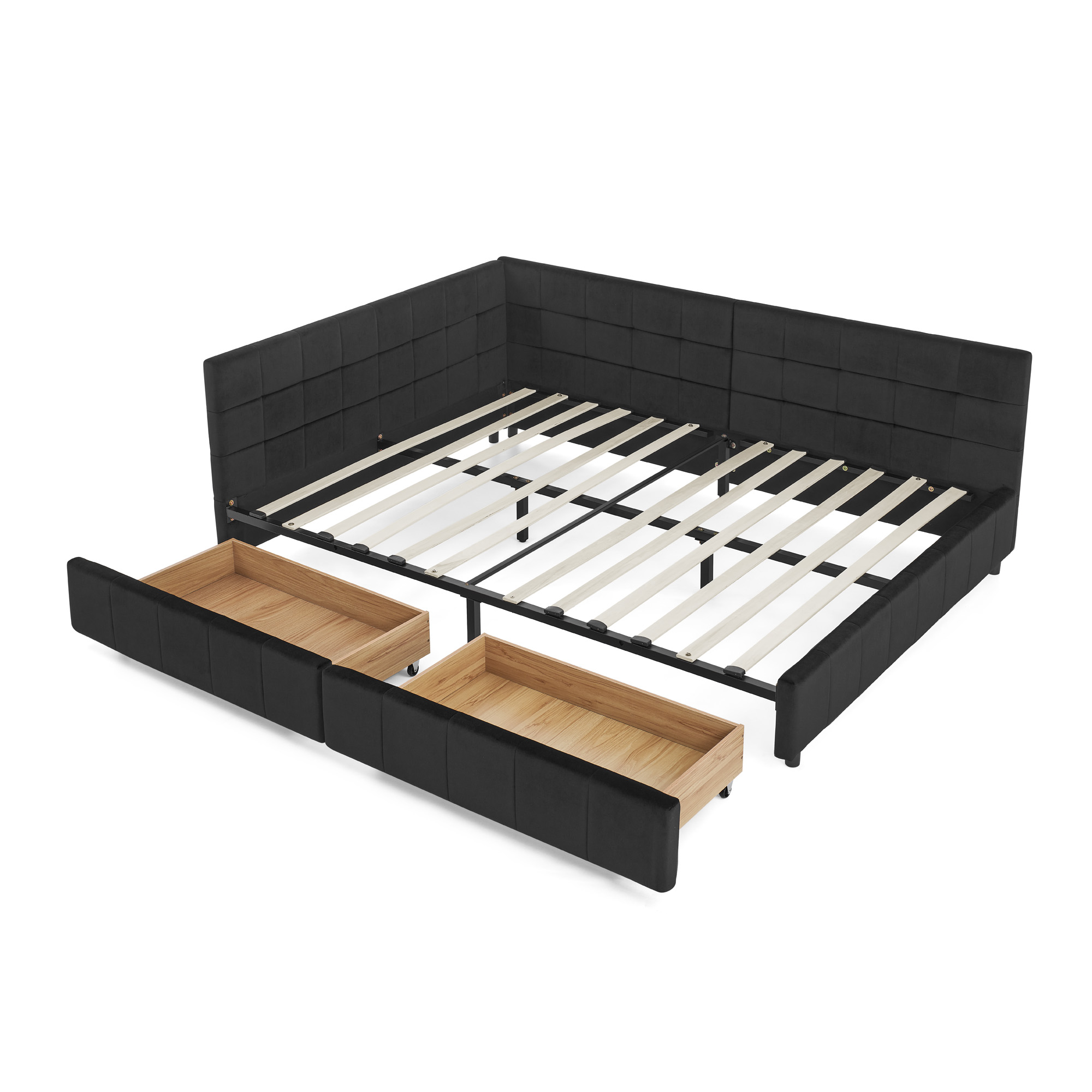 Product Name:Full Size Storage Upholstered Tufted Bed Frame, Sofa Bed Frame with Comfortable Backrest and Armrests, Full Size Bed for Bedroom, Living Room,Velvet, BLACK(80.5''*59''*29.5'')