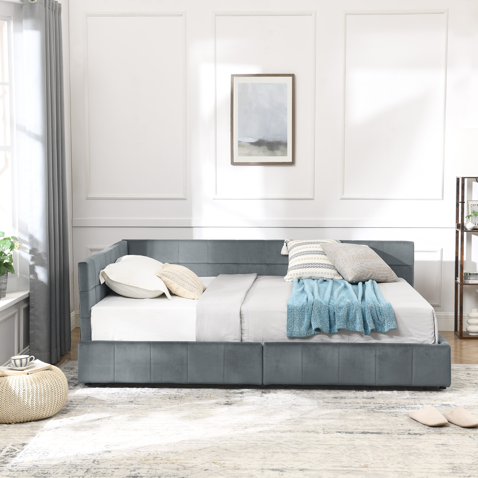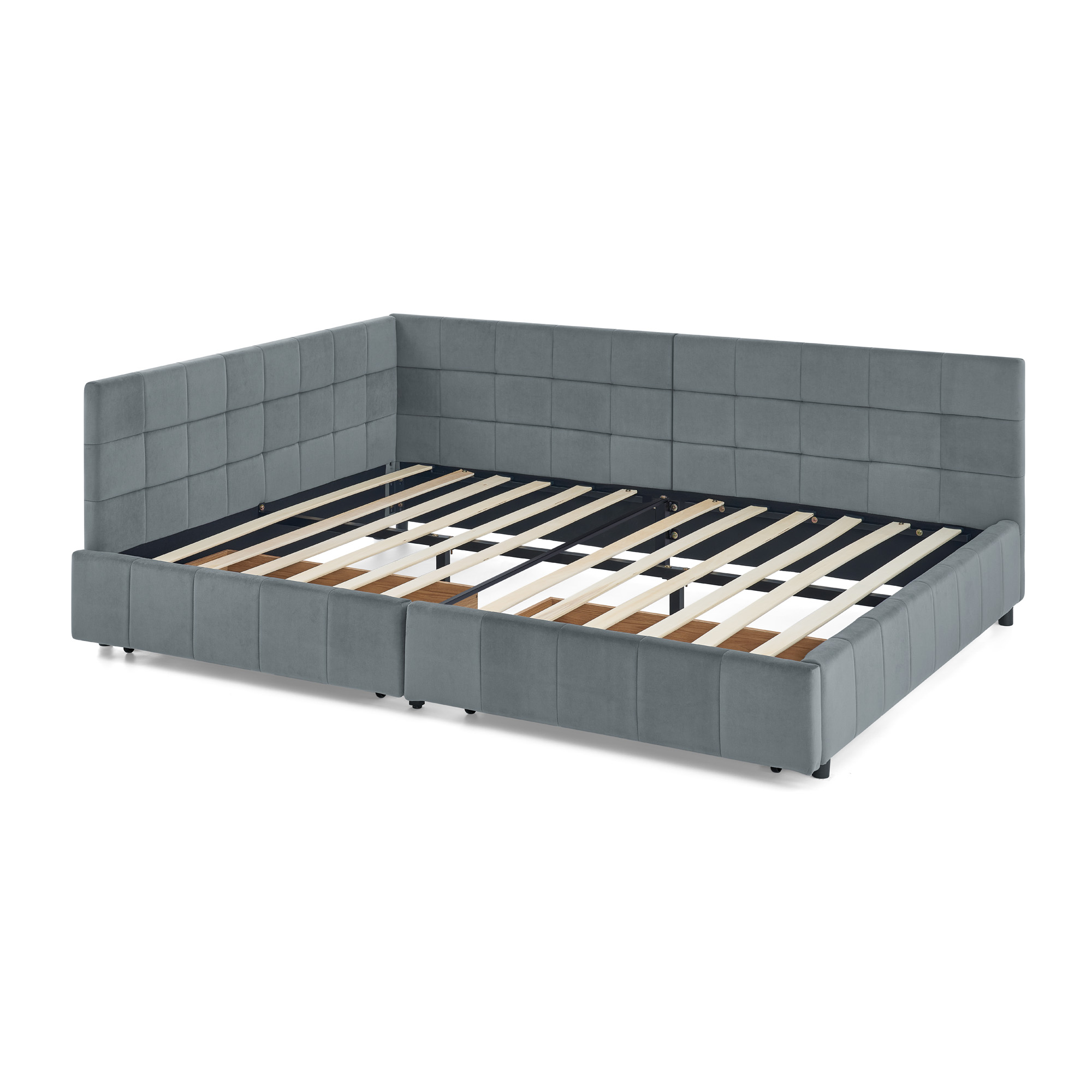 Product Name:Full Size Storage Upholstered Tufted Bed Frame, Sofa Bed Frame with Comfortable Backrest and Armrests, Full Size Bed for Bedroom, Living Room,Velvet, GREY(80.5''*59''*29.5'')