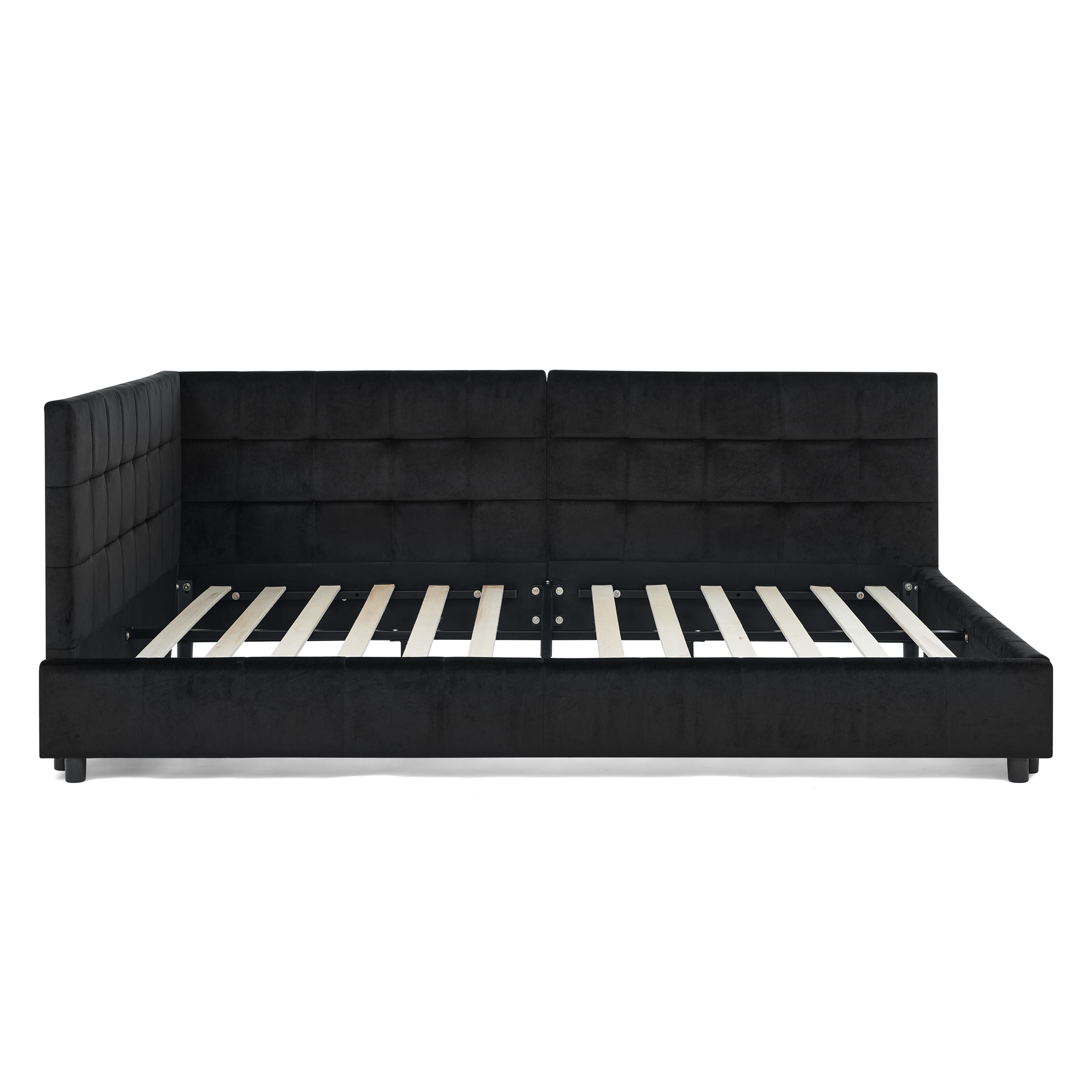 Product Name:Full Size Upholstered Tufted Bed Frame, Sofa Bed Frame with Comfortable Backrest and Armrests, Full Size Bed for Bedroom, Living Room,Velvet, Black(80.5''*59''*30.5'')