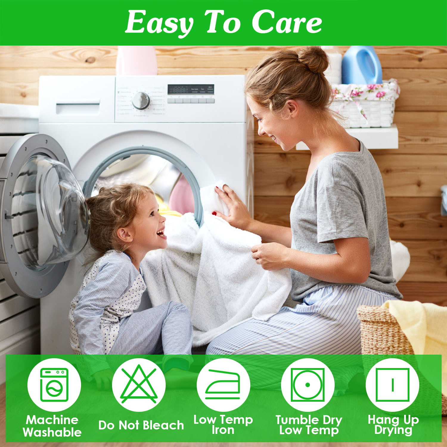 *Easy To Care*:Our machine washable mattress protector makes cleaning at a breeze. Wash with cold water on a gentle cycle,and tumble dry low to extend its service life. Please iron in low temperature and do not bleach.